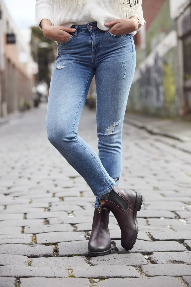 Le Blundstone #1352 della serie Originals, sono realizzate in pelle color vinaccia e sono caratterizzate da un taglio più alto rispetto alle classiche Chelsea boots. Il modello è sofisticato e chic, pur presentando tutte le nostre classiche caratteristiche di comfort: le doppie linguette per una calzata facile, elastico laterale e suola in gomma dentata antiscivolo con tallone rialzato. Il modello #1352 è perfetto da indossare per l’ufficio o per uscire con gli amici.
