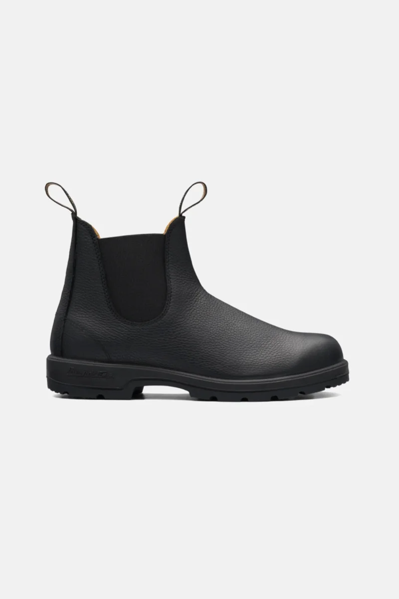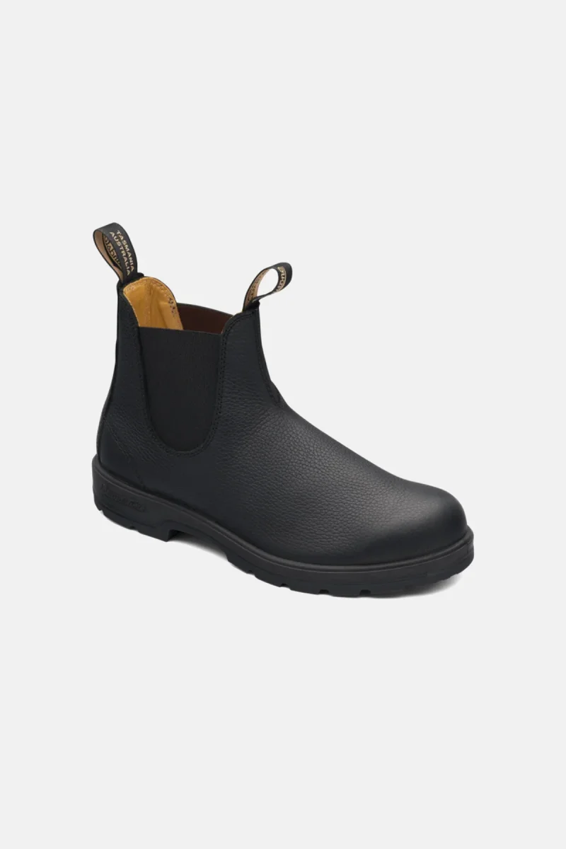 Stivaletti in stile Chelsea con elastici laterali modello Blundstone #1447, realizzati in pelle nera effetto ciottolo che dona alla scarpa uno stile unico e raffinato. Classici elastici laterali, linguetta frontale e posteriore per una calzata facile. Stivaletto dal look alla moda ed elegante della serie Classics, con un tocco grintoso dato dalla suola in gomma dentata antiscivolo. Ideali da indossare con outfit casual chic e formali.