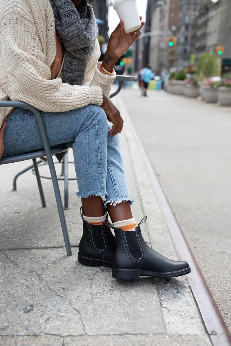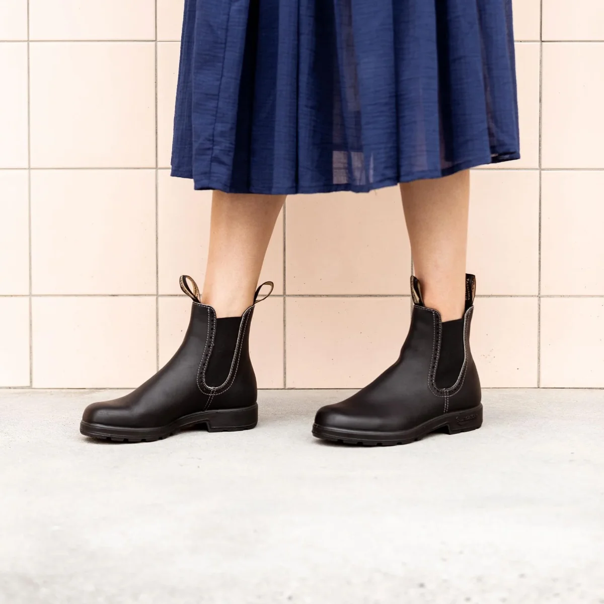 Le Blundstone #1448 della serie Originals sono realizzate in pelle nera e sono caratterizzate da un taglio più alto rispetto alle classiche Chelsea boots. Il modello è sofisticato e chic, pur presentando tutte le nostre classiche caratteristiche di comfort: le doppie linguette per una calzata facile, elastico laterale e suola in gomma dentata antiscivolo con tallone rialzato.