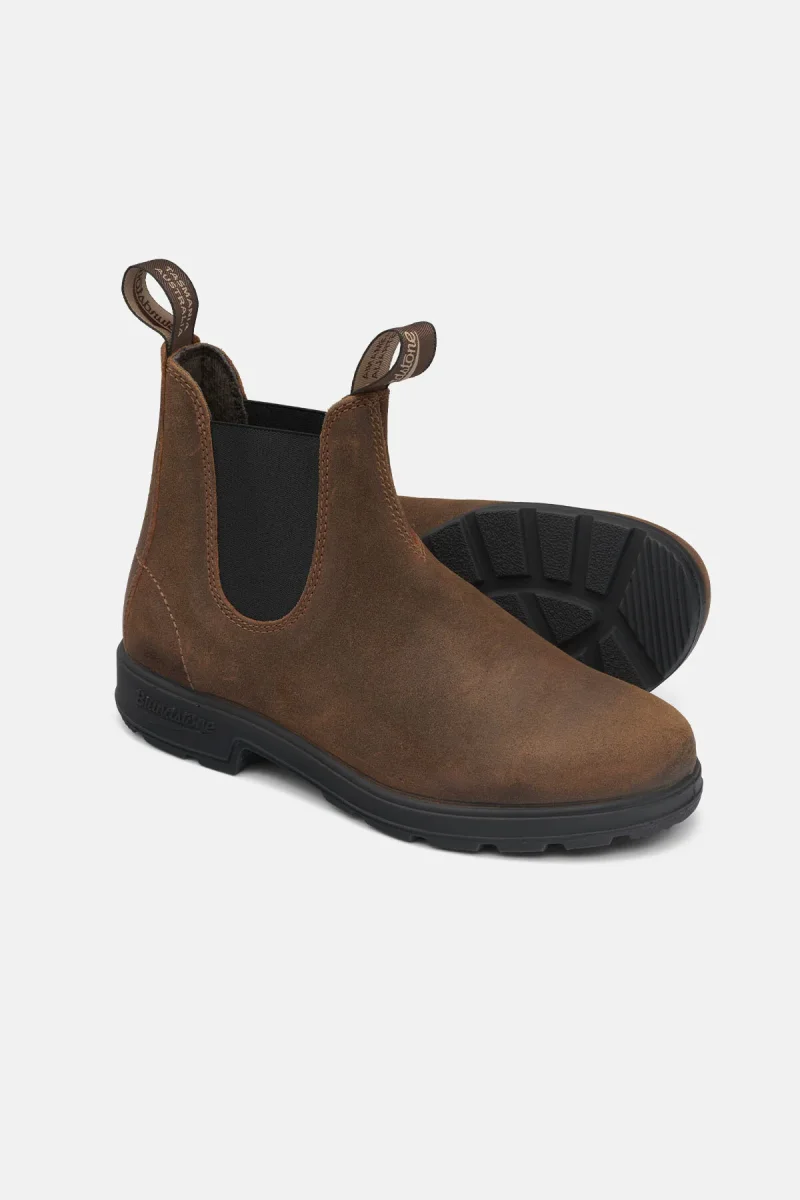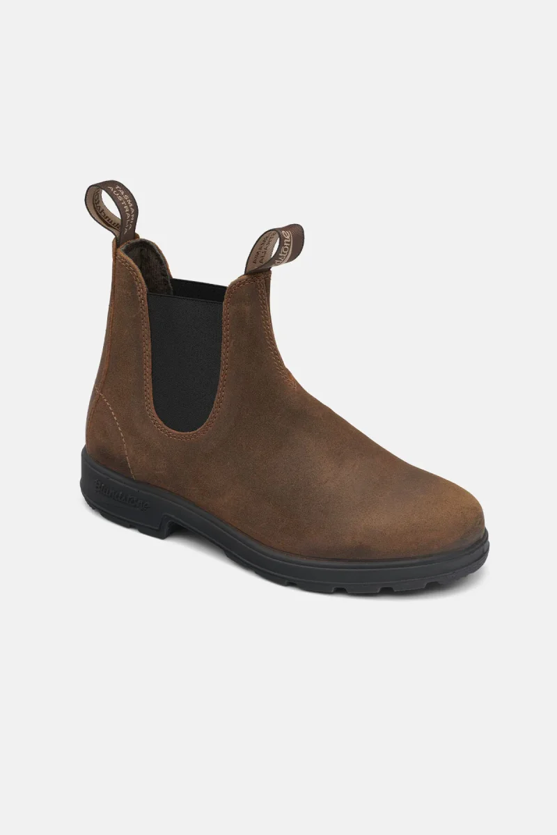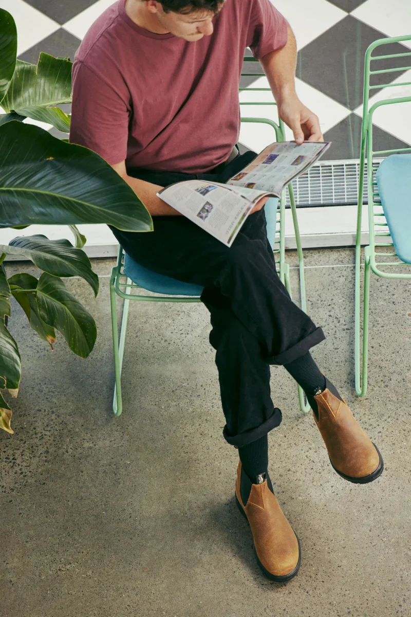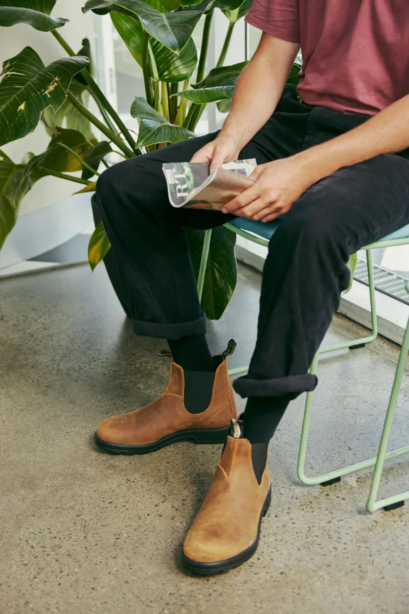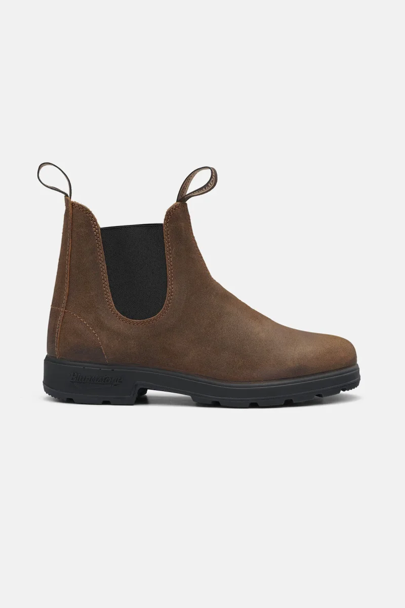 Le Blundstone #1911 sono realizzate con tomaia in pelle scamosciata resistente all’acqua, colore tabacco. Design ispirato ai Chelsea boots con classici elastici laterali, si elevano su di una comoda suola in gomma antiscivolo con carrarmato. Dotati di linguetta frontale e posteriore per facilitare la calzata, sono stivaletti comodi e alla moda della serie Originals, per look casual da tutti i giorni.