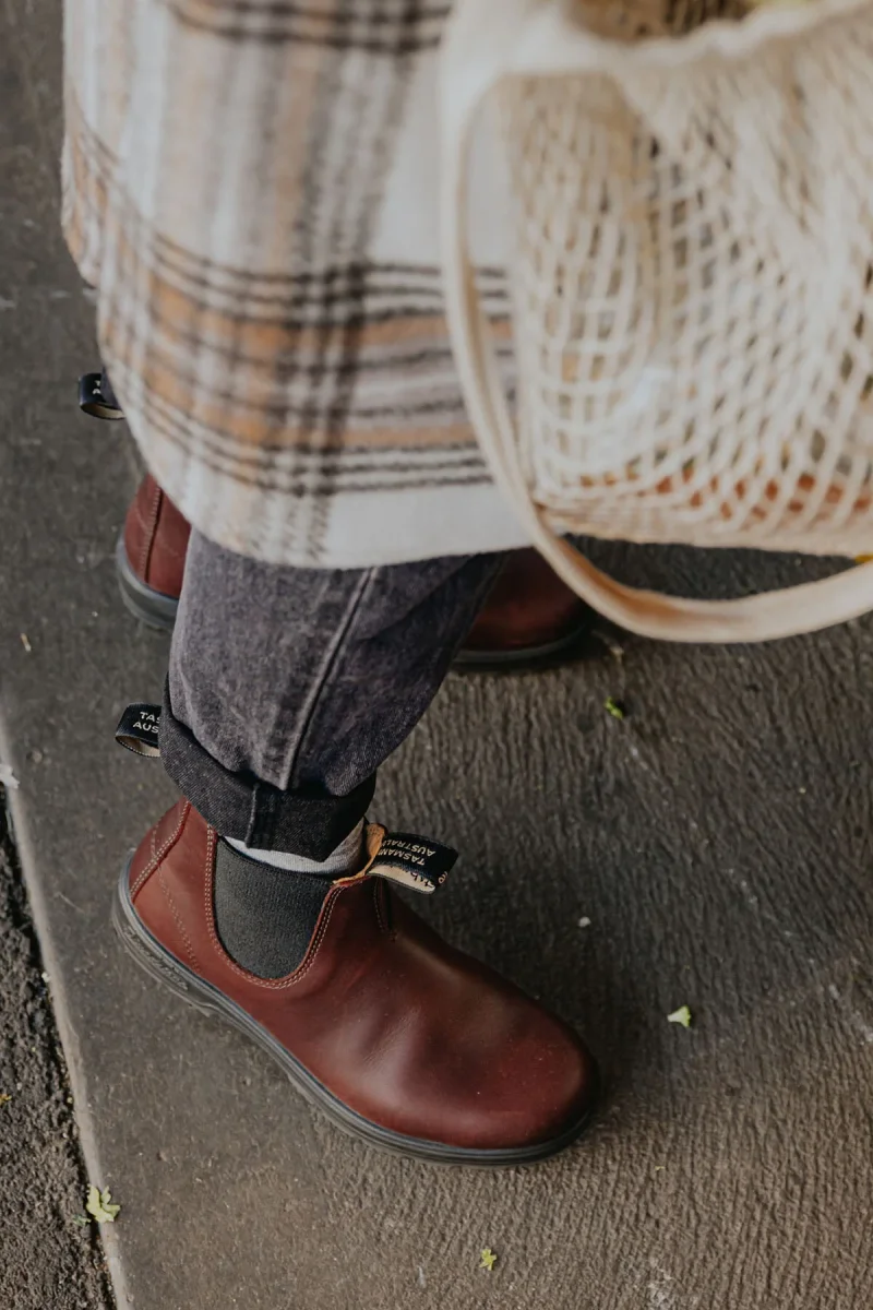 Scegli le tonalità autunnali delle Blundstone #2130 della serie Classics, realizzate in pelle color rame. Presentano tomaia liscia color rame con i classici elastici laterali e linguetta anteriore e posteriore per aiutarvi nella calzata, suola in gomma dentata con tallone rialzato per una perfetta aderenza al terreno. Si caratterizzano per un look classico che le rendono perfette per ogni occasione.