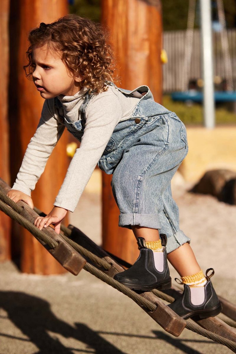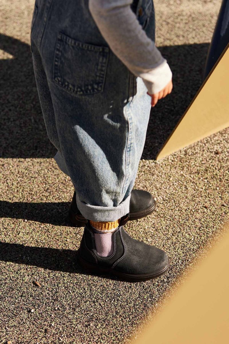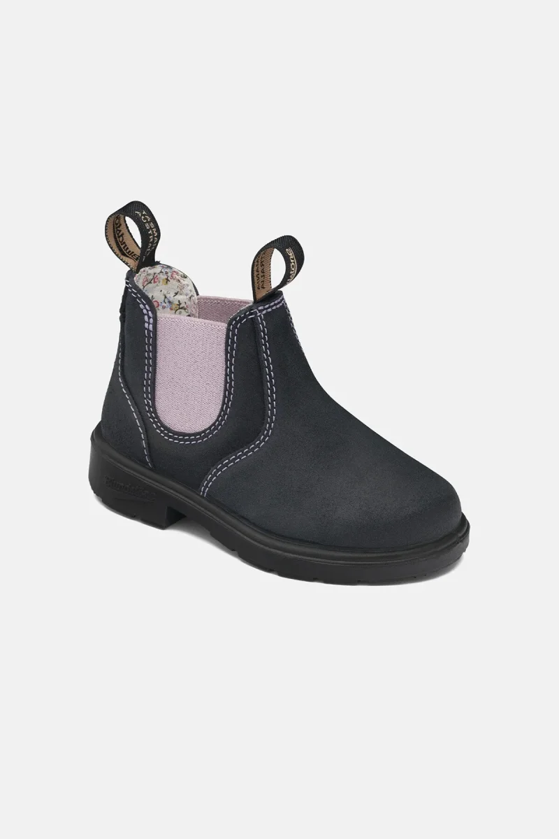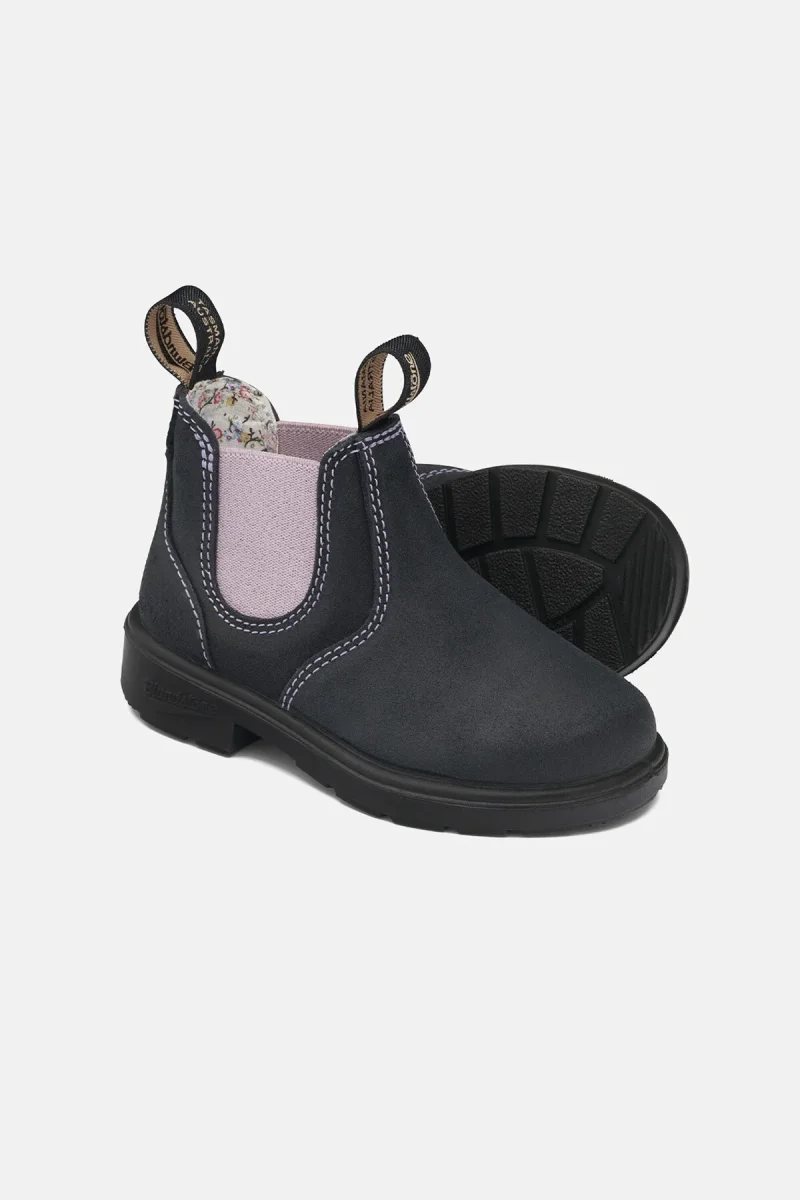 Gli stivaletti Blundstone #2195 della serie Kids sono perfetti per i look fashion dei bimbi. Realizzati in stile Chelsea boots con tomaia in pelle scamosciata blu, con elastico rosa e fodera in tessuto floreale per un tocco alla moda. Presentano linguetta frontale e posteriore per aiutare i bambini ad indossarli e suola in gomma resistente e antiscivolo. Questo modello è l’adorabile versione per bambini dello stivaletto per adulti #2034.