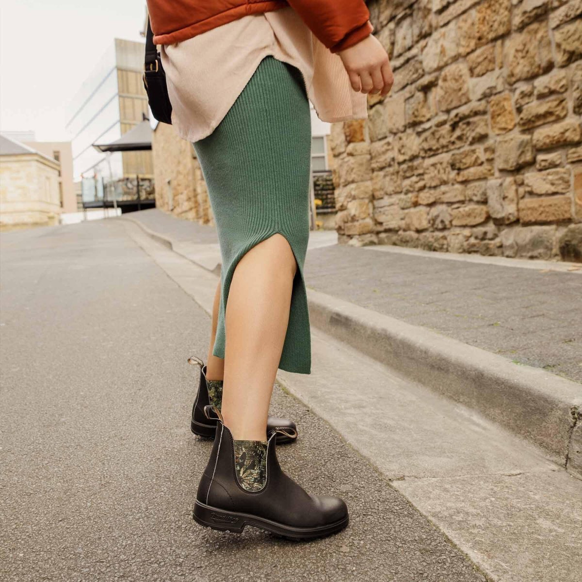 Le Blundstone #2201 in pelle resistente all’acqua color nero con elastico d’ispirazione floreale sono un vero e proprio omaggio alla natura. Presentano linguetta frontale e posteriore per una calzata facile e suola antiscivolo. Questo modello comodo e femminile della serie Originals si abbina facilmente sia con outfit casual che più formali.