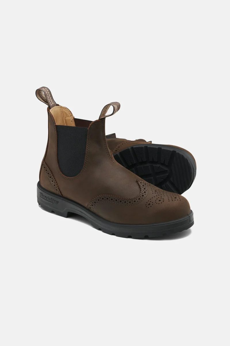 Rinnova il tuo look con il modello Blundstone Classic #2444. Caratterizzati da splendidi dettagli brogue, questi stivaletti aggiungono un tocco sofisticato al nostro modello classico. Realizzati in pelle premium resistente all’acqua, gli stivaletti offrono un comfort e una durata eccezionali. Perfetto per le occasioni formali, il modello #2444 offre un design raffinato unito al comfort moderno.