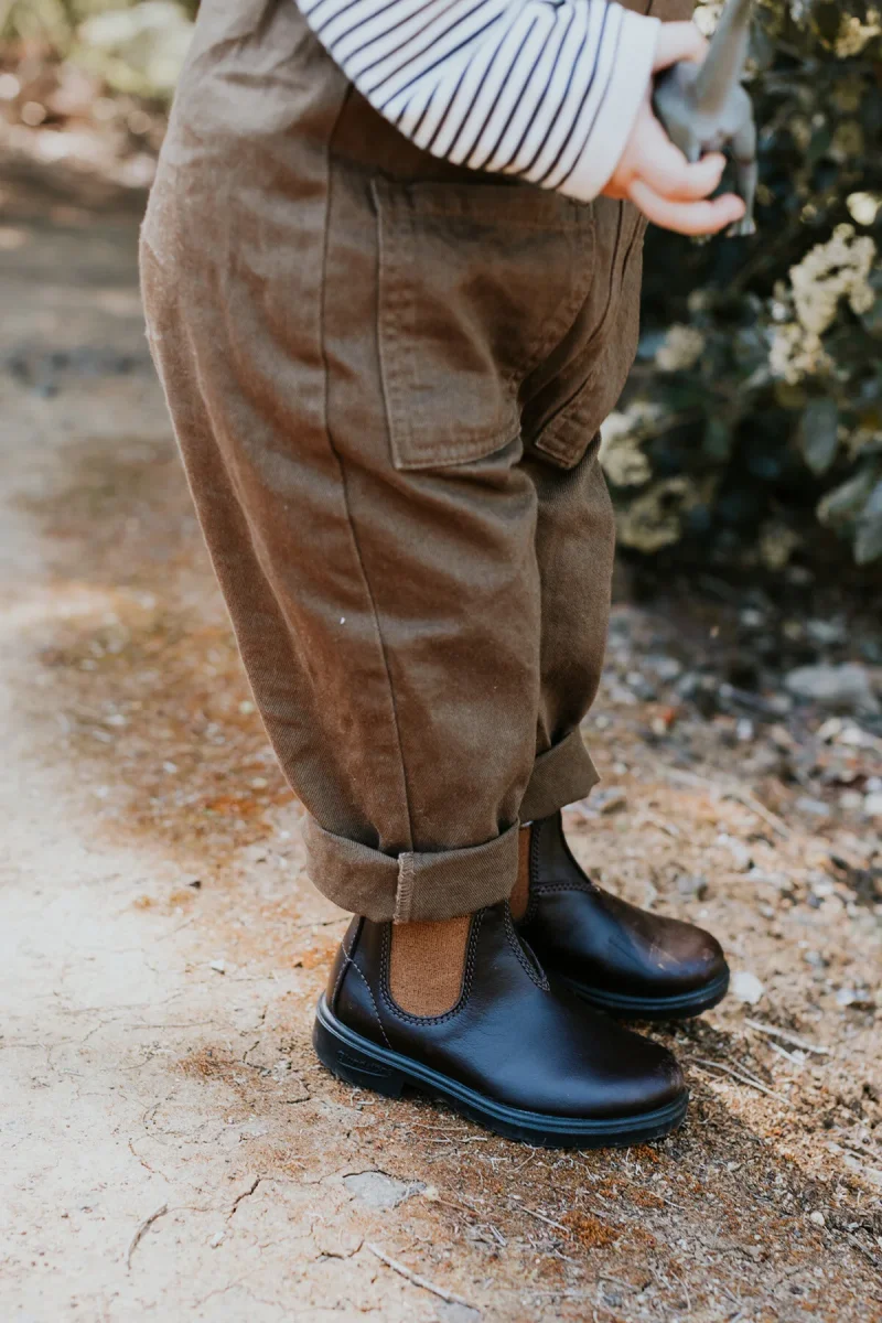 Gli stivaletti Blundstone #2391 della serie Kids, realizzati in pelle marrone resistente all’acqua con elastici laterali color tabacco, sono stati progettati pensando alla sicurezza dei vostri bambini. Con le classiche linguette che agevolano la calzata e la suola in gomma antiscivolo per una presa sicura, i piedini dei vostri piccolo saranno ben protetti durante le loro avventure. Questi stivaletti garantiscono inoltre il massimo comfort per far divertire i vostri piccoli in ogni occasione.