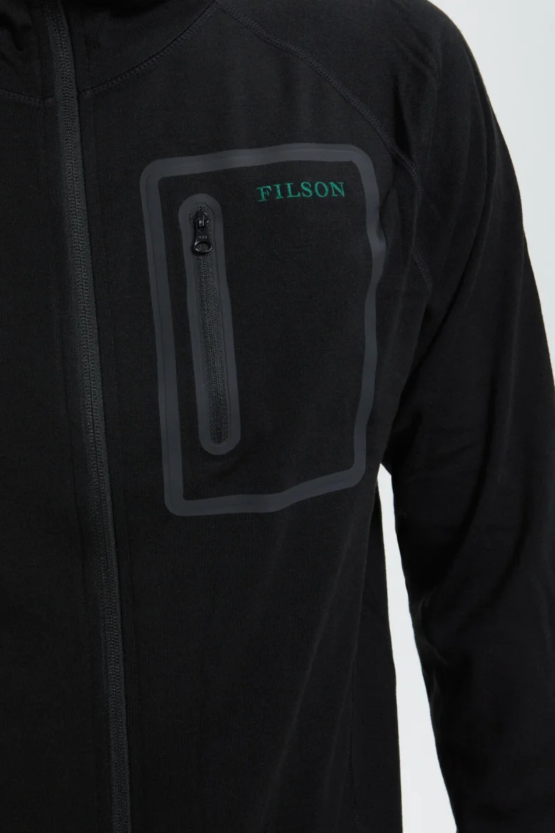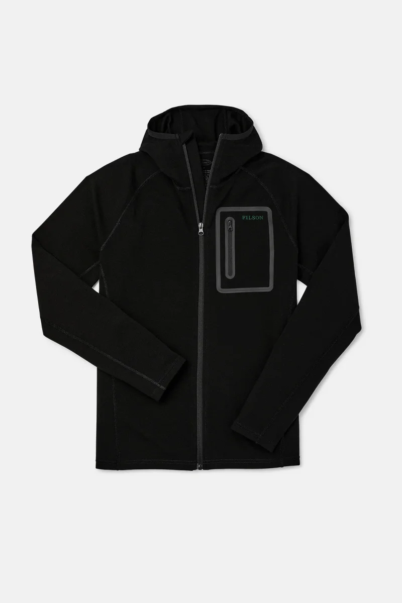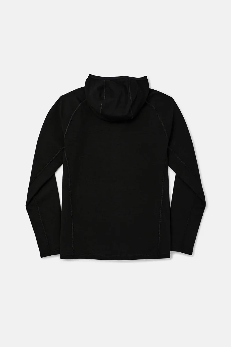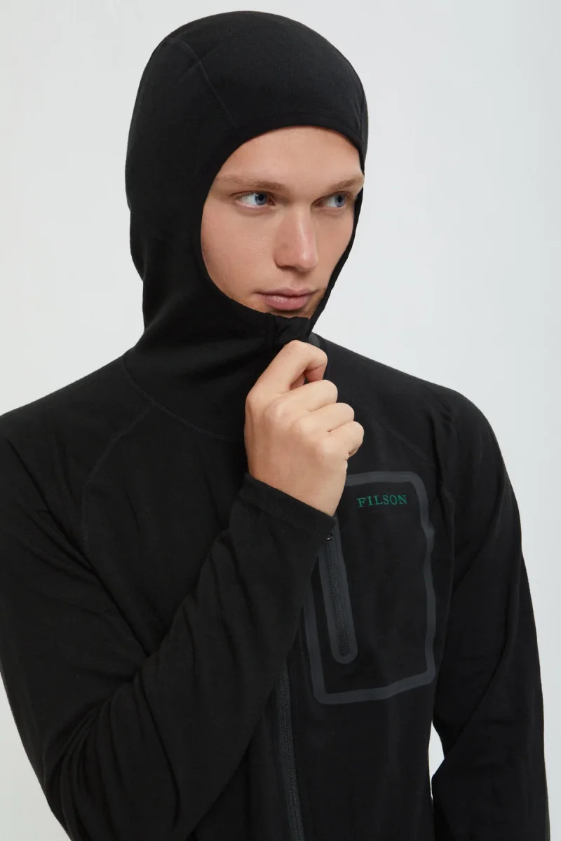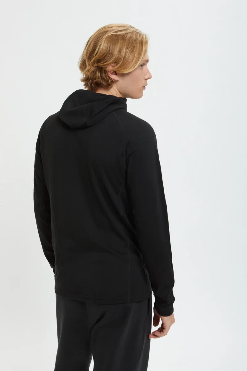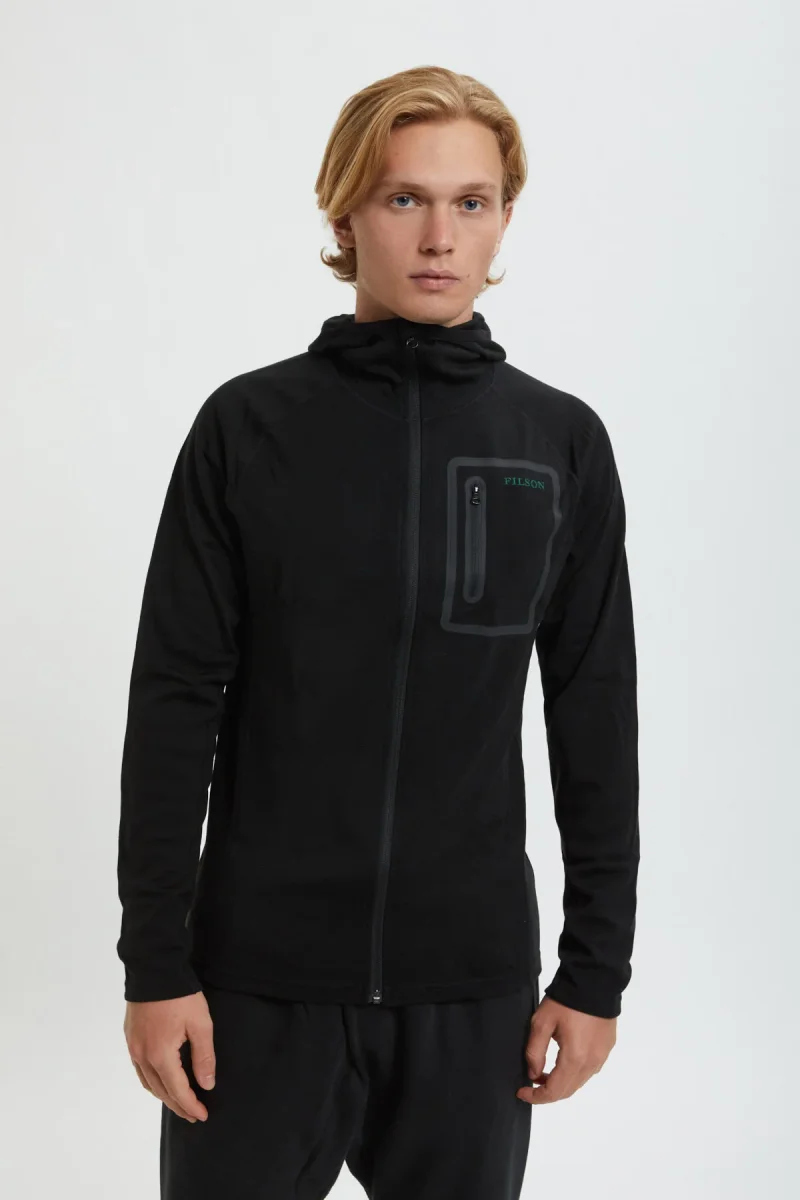 Morbida e anti-sudore, la lana merino da 400 g trasforma questa maglia pesante con cappuccio in un efficace strato di base da portare a contatto con la pelle quando fa più freddo o anche come maglione leggero. In lana ultrafine da 400 grammi, allontana naturalmente il sudore e resiste in modo efficace agli odori. Completano il modello una cerniera a tutta lunghezza e una tasca con zip sul petto.