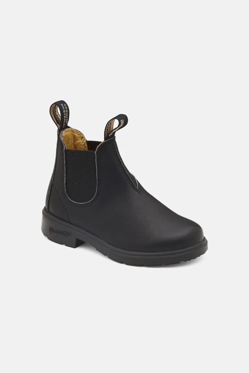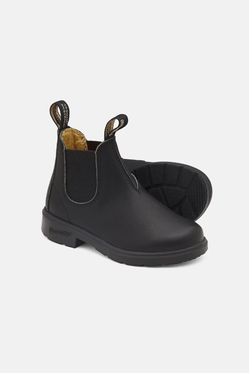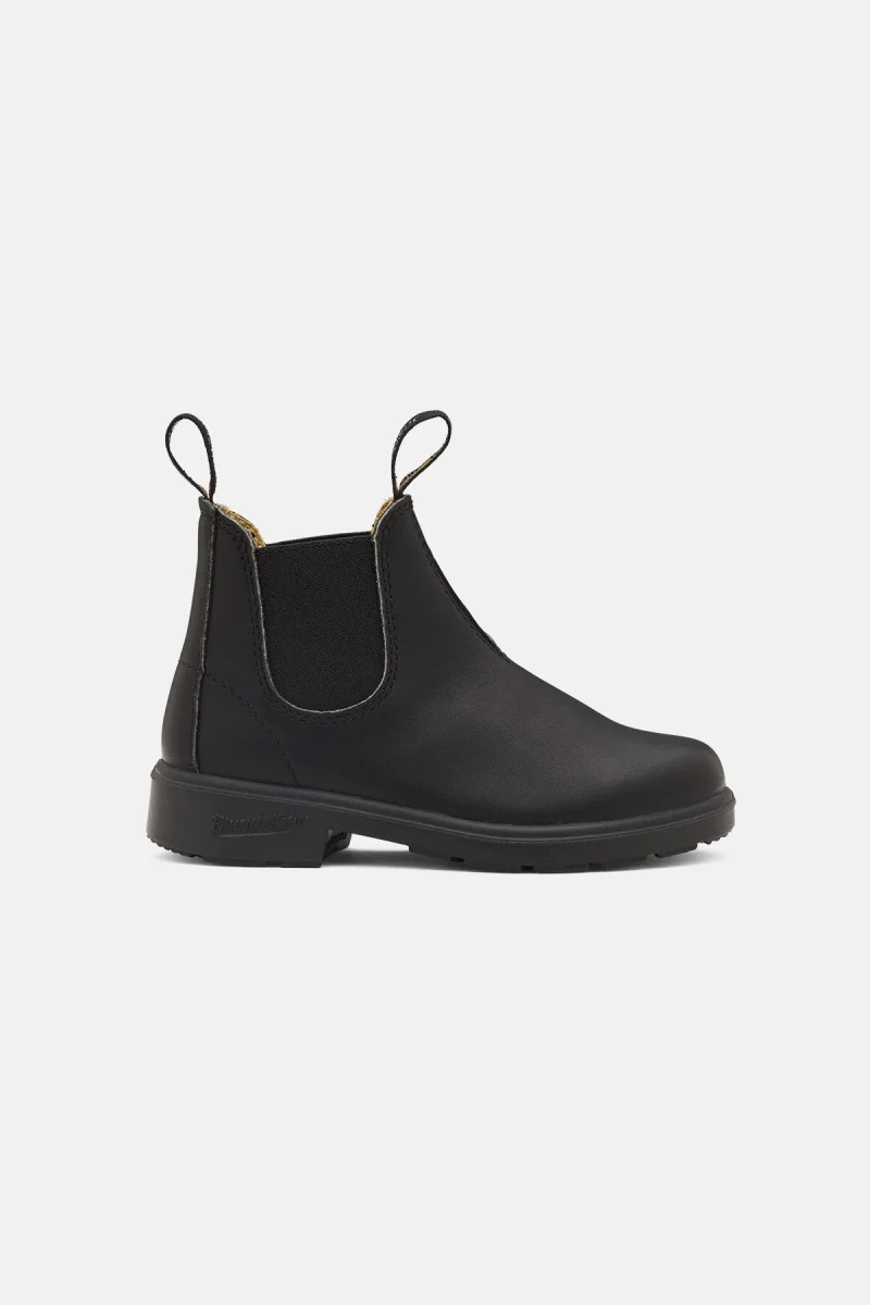 Gli stivaletti da bambini in stile Chelsea modello Blundstone #531 sono realizzati in pelle nera resistente all’acqua, con classici elastici laterali in tono. Linguetta frontale e posteriore per una calzata facile, suola in gomma antiscivolo e punta tonda alzata. Uno stivaletto resistente per look casual della linea Kids, in grado di offrire il massimo della sicurezza e del comfort con uno stile alla moda.