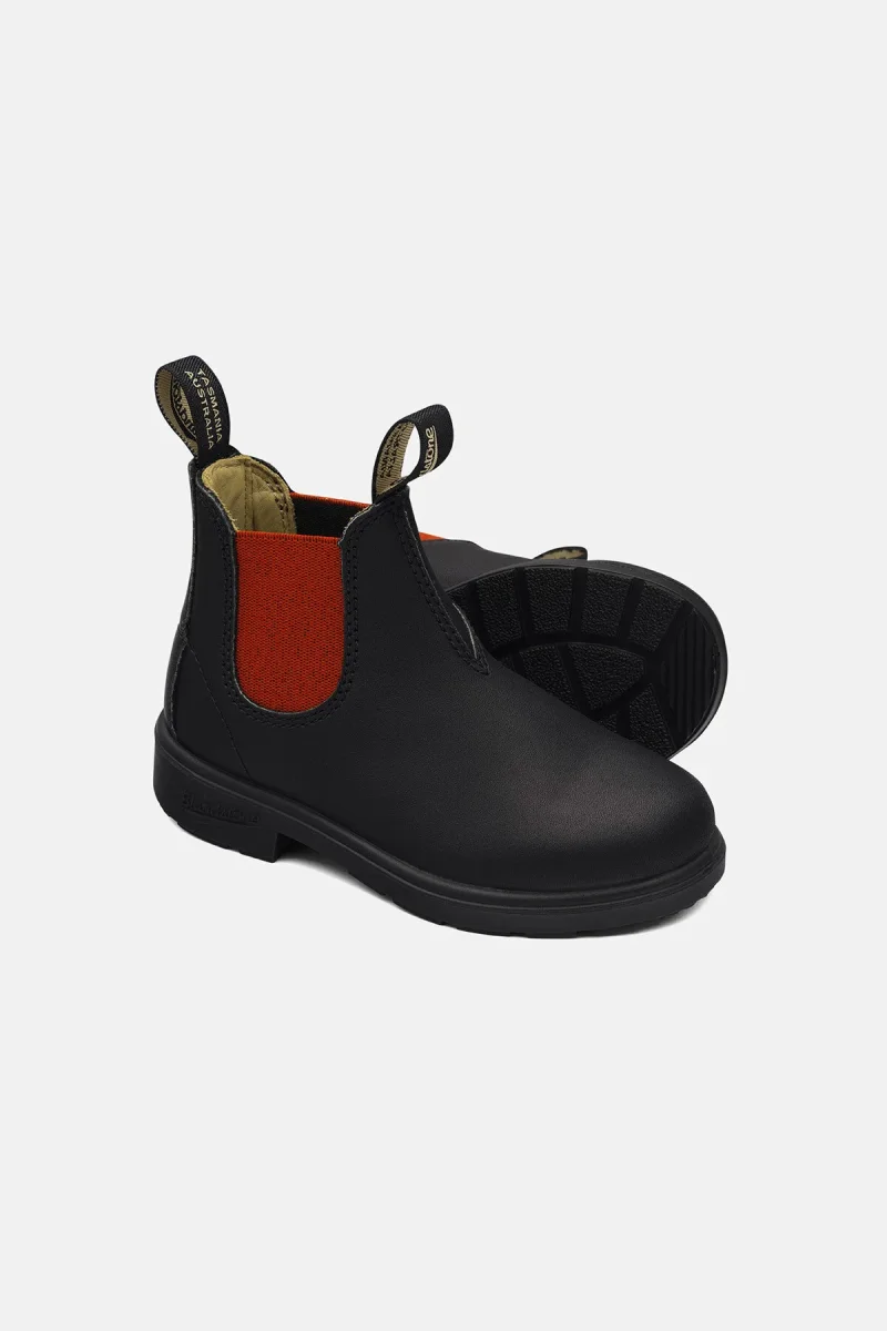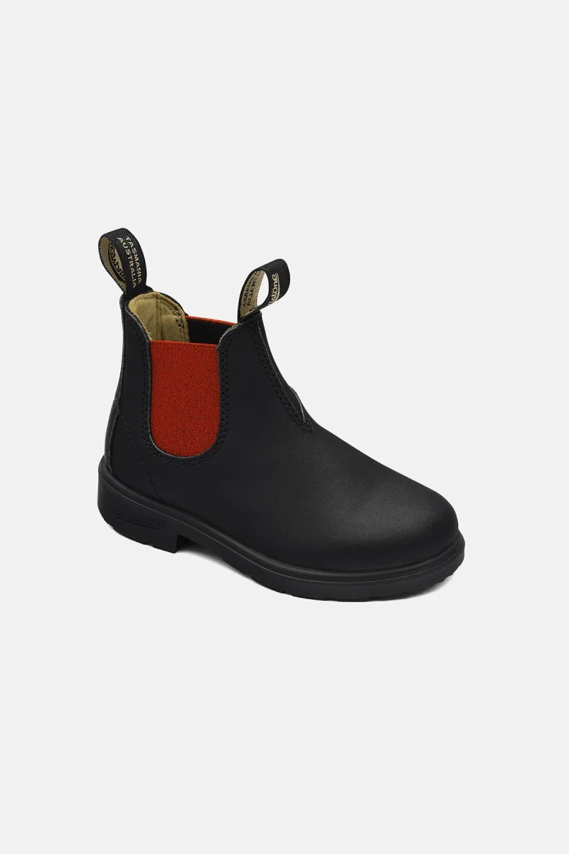 Comodo stivaletto da bambino in stile Chelsea modello Blundstone #581. Realizzato in pelle nera resistente all’acqua, si caratterizza per l’elastico laterale rosso su ambo i lati. Linguetta frontale e posteriore per una calzata facile, suola in gomma con tallone rialzato. Uno stivaletto casual della serie Kids, nato per accompagnare i più piccoli offrendo il massimo della sicurezza e della protezione, con un tocco alla moda.