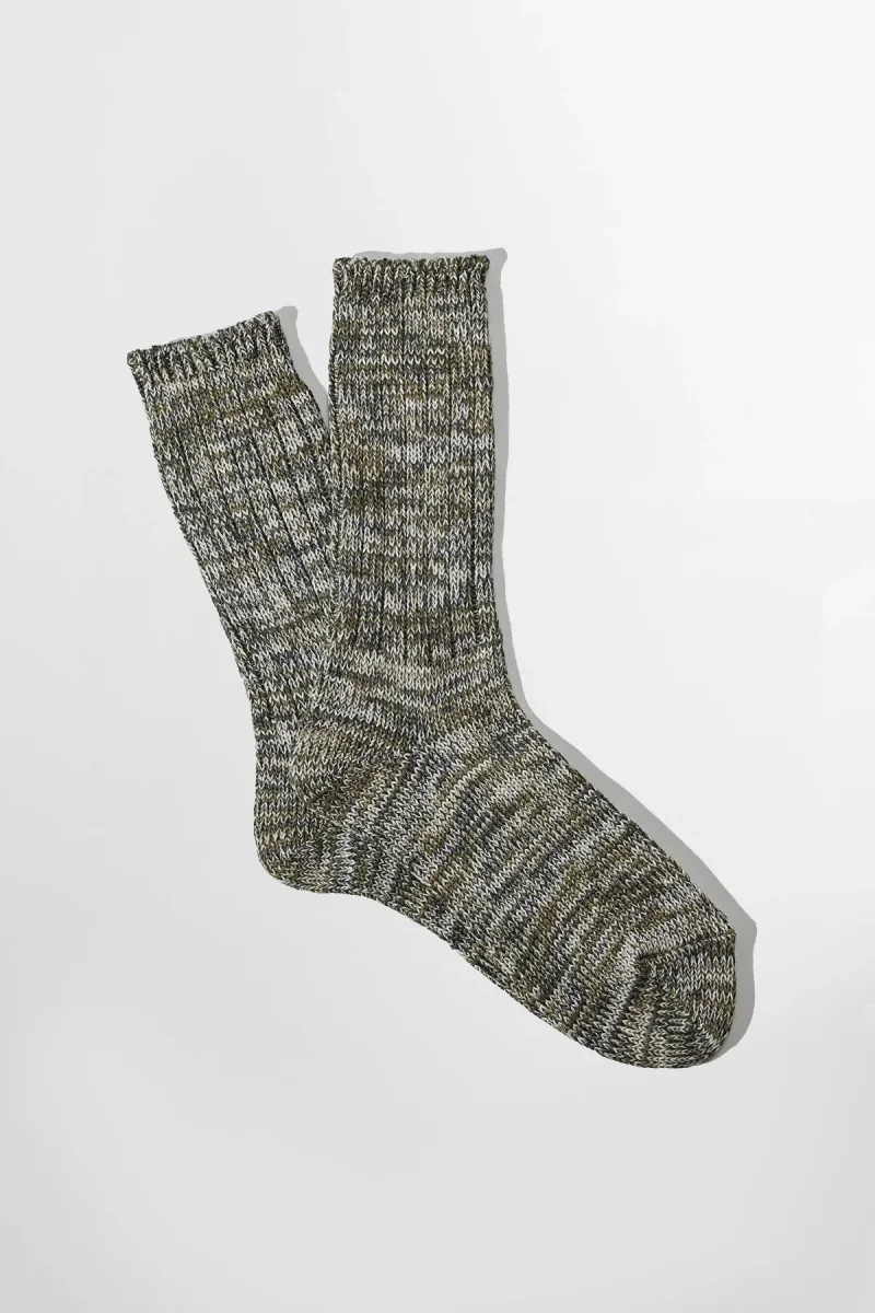 La 5-Color Mix Crew è un capo iconico di Anonymous Ism, che unisce artigianalità e qualità. Il tessuto, accuratamente realizzato con una particolare tecnica over-gauge su macchine a basso numero di aghi, raggiunge il perfetto equilibrio tra morbidezza, spessore e resistenza. Realizzate con filati pettinati vivaci e di alta qualità, queste calze svelano un ricco motivo multicolore, in cui cinque tonalità si intrecciano armoniosamente creando un look distintivo e dinamico.