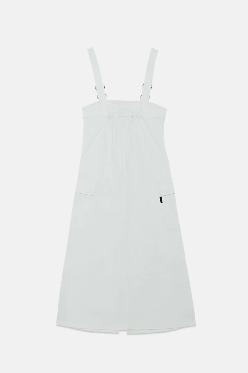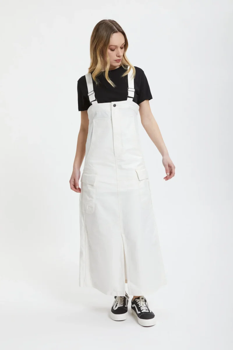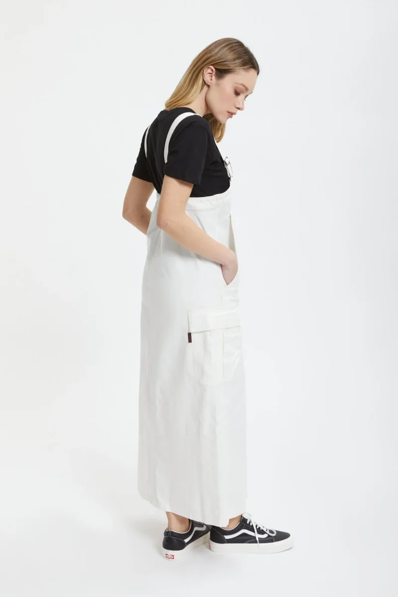L’abito Cargo di Gramicci è un abito lungo con apertura centrale con zip e elastico nella parte superiore del dietro, per indossarlo facilmente. Ha tasche cargo su entrambi i lati e una grande tasca a marsupio sul davanti. Ci sono coulisse su entrambi i lati per regolare la lunghezza. Ideale per le giornate estive.