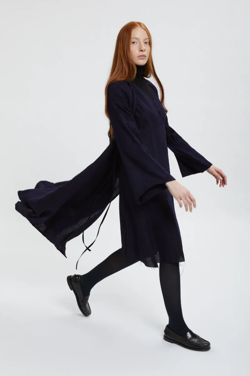 Needles presenta u nuovo modello di abito, il Wrap Gilet: un abito senza maniche in tessuto morbido e comodo. La deliziosa coulisse in vita aggiunge un dettaglio particolare all’intero design e consente di regolare la vestibilità come si preferisce. In un inedito jacquard pied-de-poule, questo capo si distinguerà sicuramente dalla massa.