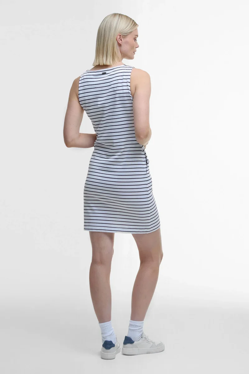 Perfetto per i mesi estivi, l’abito midi Dalmore con motivo a righe firmato Barbour è un capo leggero dallo stile casual che ti permette di sfoggiare un outfit raffinato e disinvolto. Abbinalo a un paio di sneakers o sandali per un look da indossare ogni giorno.