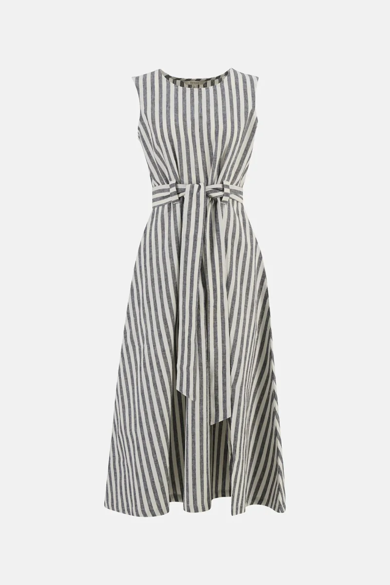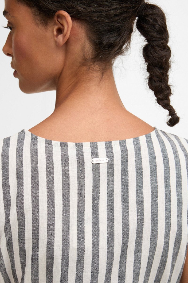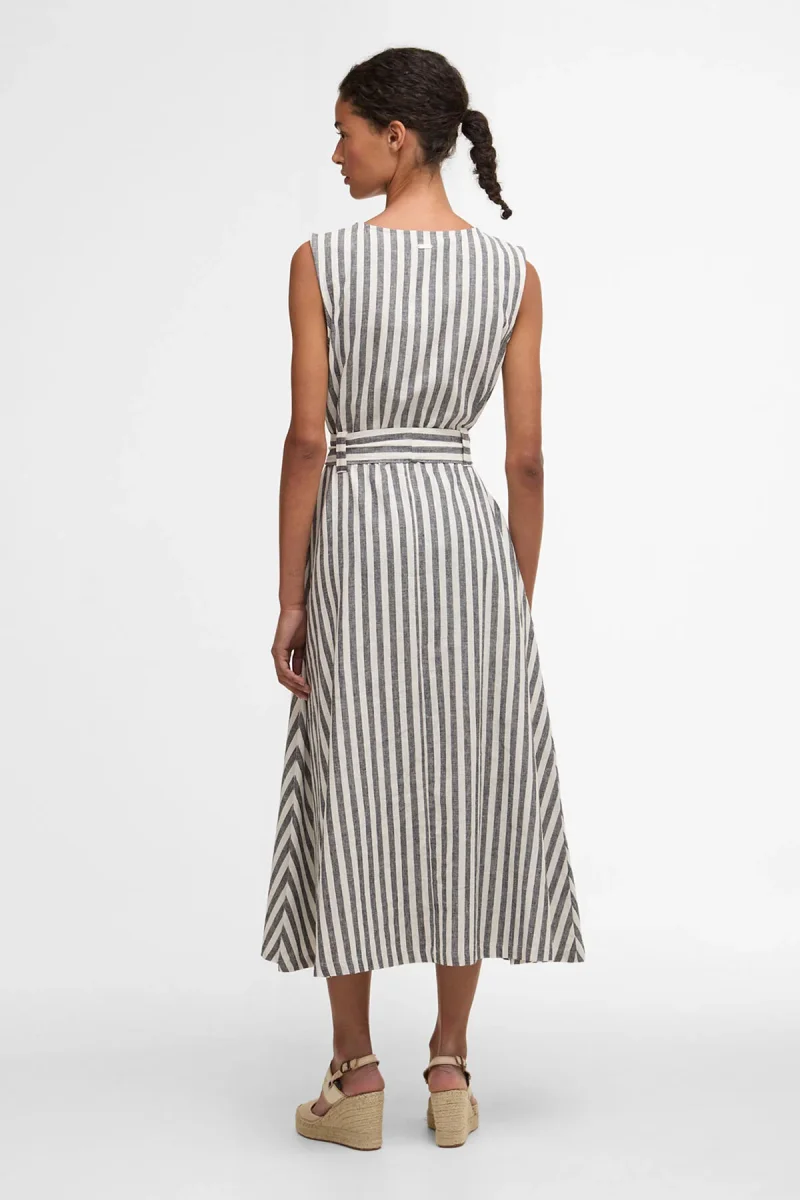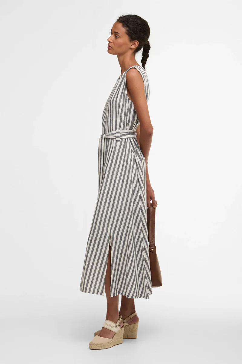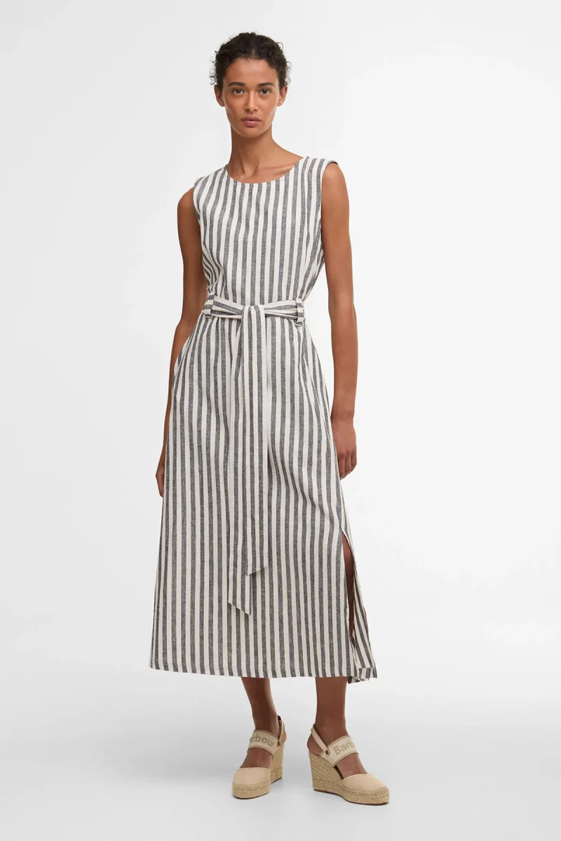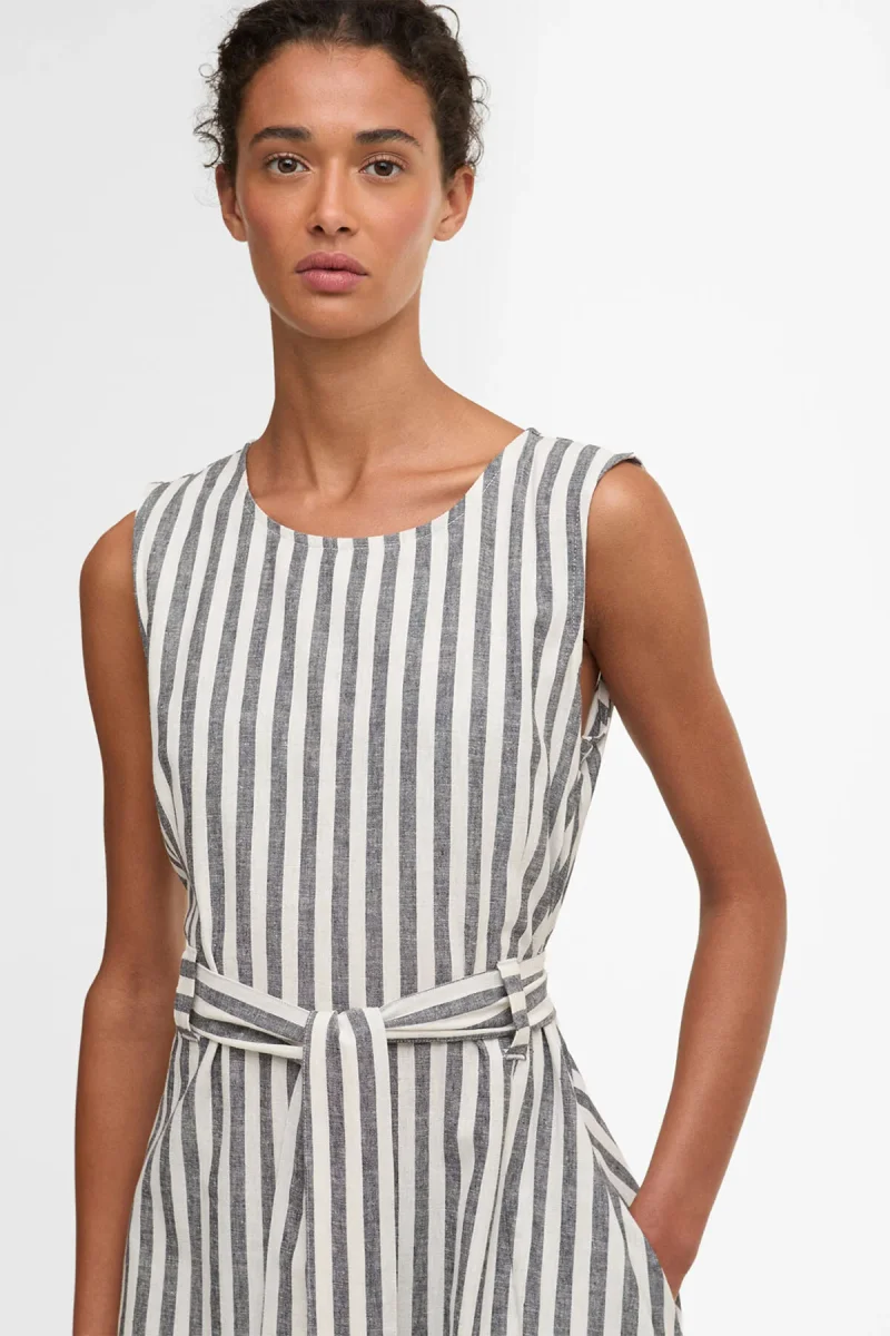 L’abito midi Inez con motivo a righe di Barbour è un capo estivo senza tempo, realizzato in un misto di cotone e lino leggero e traspirante. Caratterizzato da un audace motivo a righe, un taglio senza maniche e una cintura di annodare in vita, questo capo sfoggia una silhouette splendidamente femminile. La lunghezza midi esalta l’eleganza del capo, mentre il morbido drappeggio assicura un comfort ottimale per tutto il giorno. Indossa quest’abito con disinvoltura sia di giorno che di sera.