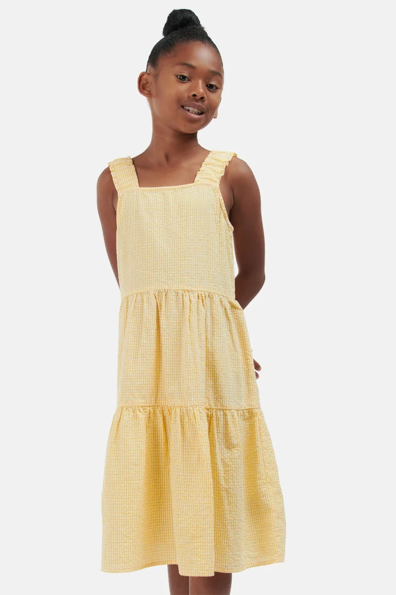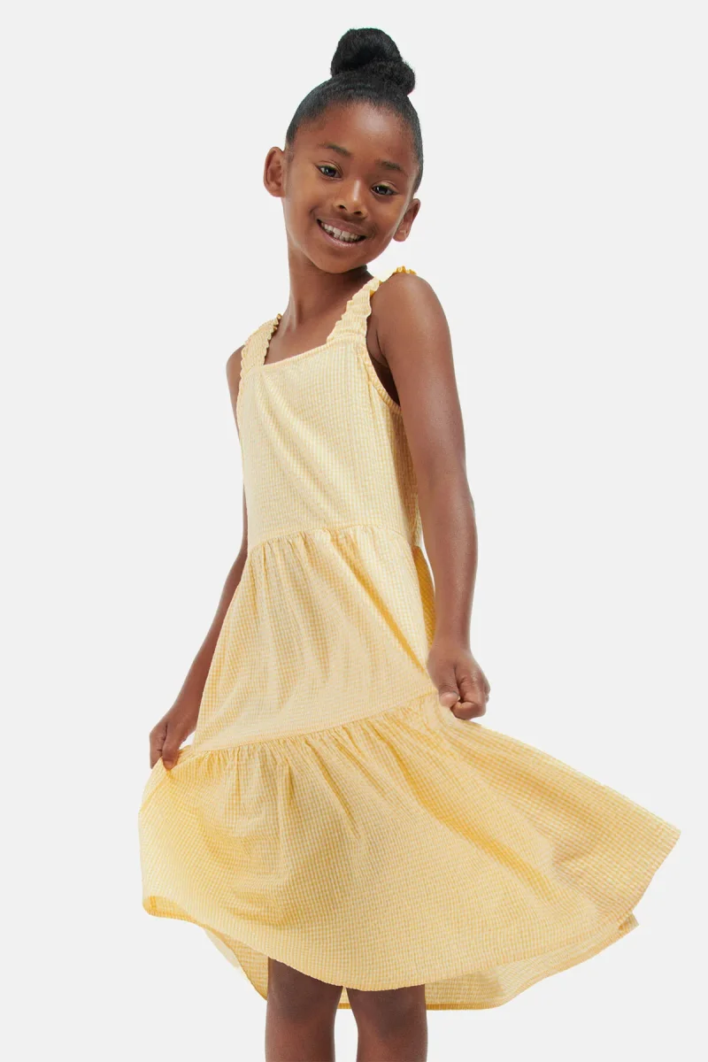 L’abito a righe per bambine Barbour Mia si distingue per la sua grazia ed eleganza. Questo capo in 100% cotone è caratterizzato da una fantasia gingham, da balze sulle spalle e dallogo Barbour sul retro.