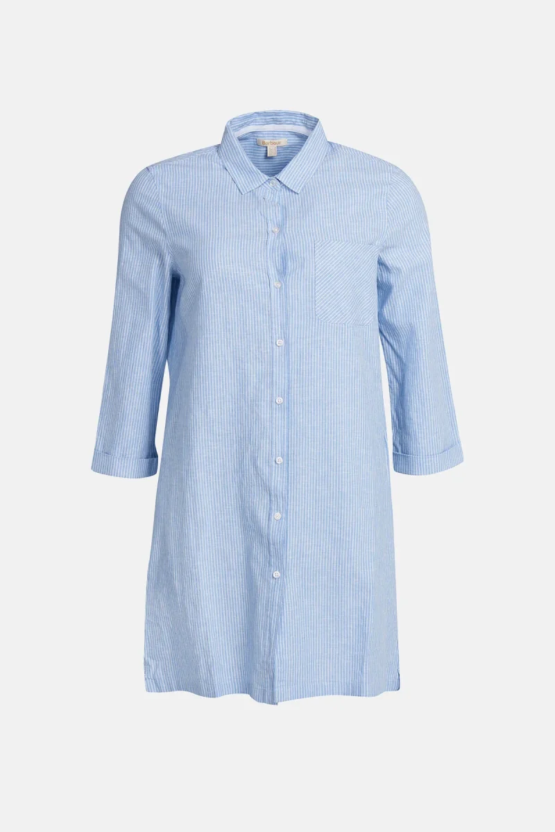 Realizzato in un bellissimo cotone misto lino, l’abito scamiciato Barbour Seaglow mostra uno stile ispirato alla camicia in un colore chambray. Perfetto per le passeggiate sulla spiaggia, l’abito Seaglow è sofisticato se abbinato a scarpe da ginnastica o sandali per un look da tempo caldo. Una sottile targhetta identificativa in metallo sul retro del collo rifinisce il capo.