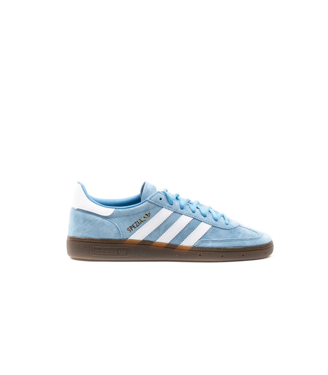 Sneakers Adidas Handball Spezial gum celeste con suola a contrasto in gomma. Tomaia in suede con bande laterali iconiche del brand. Una sneakers nata nel 1979 per gli atleti di pallamano diventata oggi un icona di stile nell’ambito streetwear e fashion.BD7632