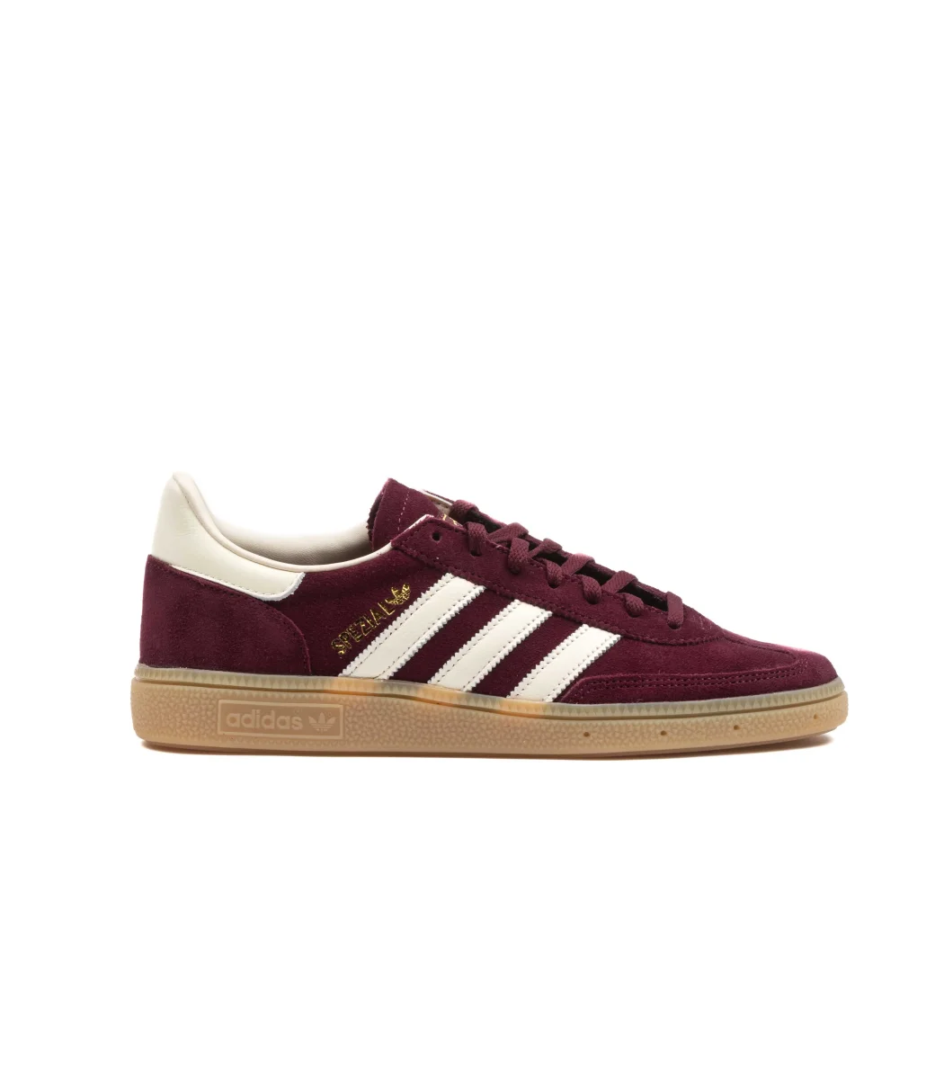 Le Adidas Handball Spezial W Maroon rivisitano uno storico modello indoor con un tocco femminile e super attuale. Questa versione in suede bordeaux profondo con dettagli a contrasto e la classica suola in gomma naturale trasparente fonde perfettamente stile vintage e comfort moderno. Leggere, versatili e dallo stile rétro irresistibile, sono perfette per completare outfit casual, street o sporty-chic. Nata per i campi da pallamano negli anni ’70, oggi la Spezial è un’icona di stile quotidiano. Le Adidas Handball Spezial W Maroon sono la sneaker ideale per chi cerca carattere, storia e stile in un’unica scarpa. SKU: JP8726