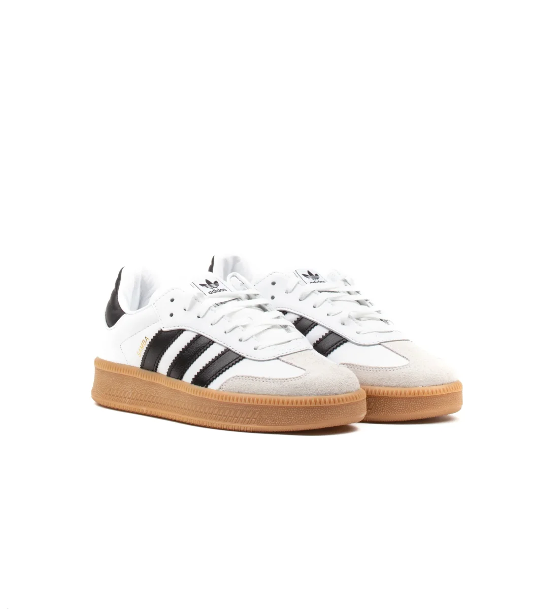 Sneakers Adidas modello Samba Xlg colore bianco con suola gum original. Una sneakers iconica del brand rivisitata per offrire ancora più originalità. Il connubio di due mondi come il football e lo skateboard caratterizzano il design di questo modello, intersuola maggiorata e imbottitura extra rendono questa snekaers inconfondibile.