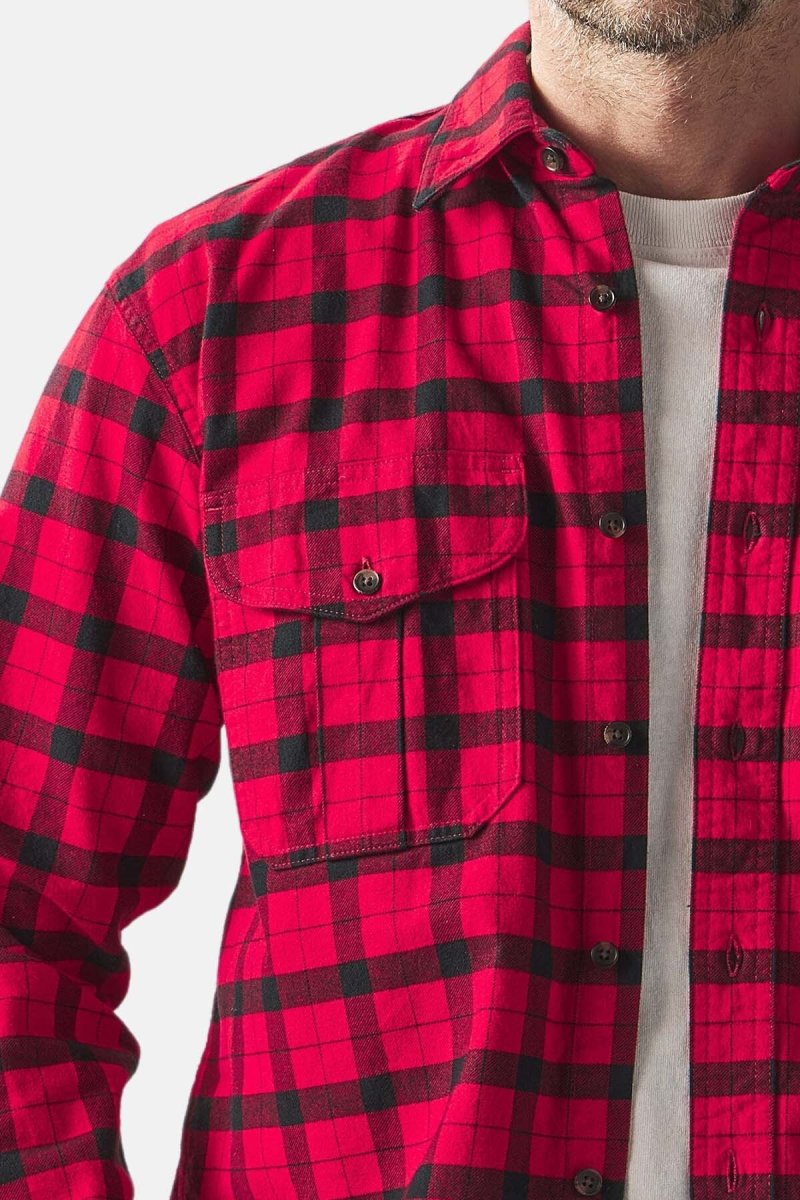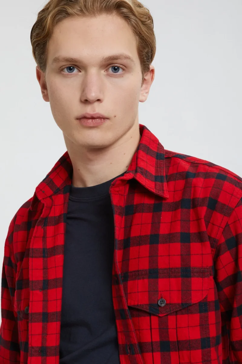 La nostra iconica flanella è spazzolata su entrambi i lati per calore e morbidezza ai massimi livelli nonostante lo spessore e il peso del tessuto. Ideale da indossare sopra una T-shirt quando il clima è fresco o con un capo base e un gilet se le temperature calano. La trama densa e fitta fa da barriera contro il freddo e il vento, conferisce inoltre al capo una durata impareggiabile. La plissettatura sulla schiena consente la massima libertà di movimento, rendendo questa camicia adatta anche alla caccia, alla pesca o a spaccare legna. Le doppie tasche anteriori con patta, espandibili e a soffietto, possono ospitare oggetti voluminosi e sono dotate di bottoni Filson praticamente indistruttibili. Prelavato.