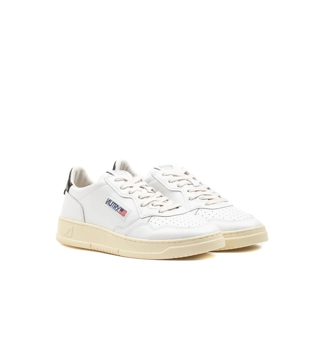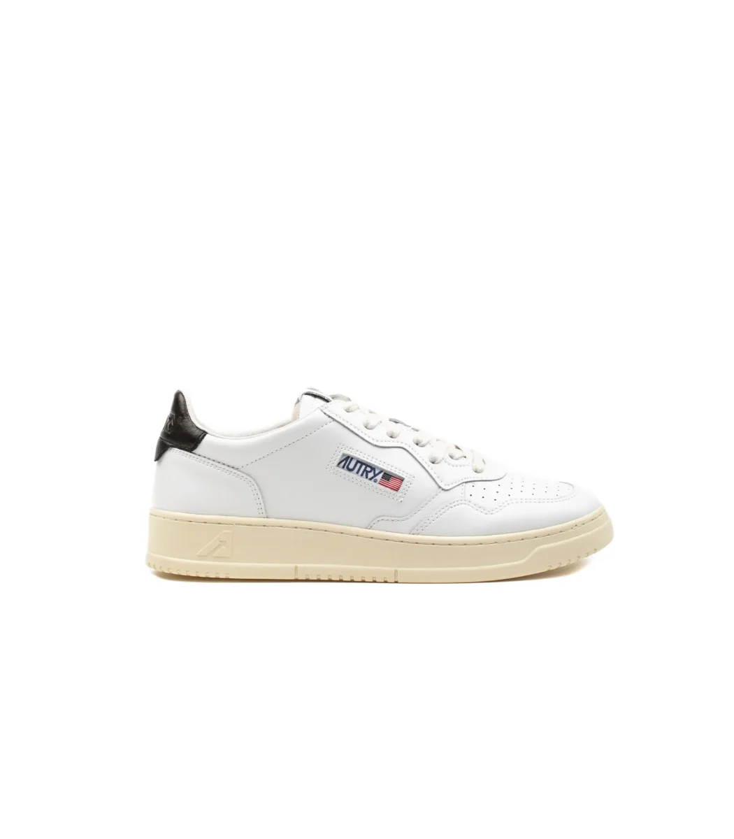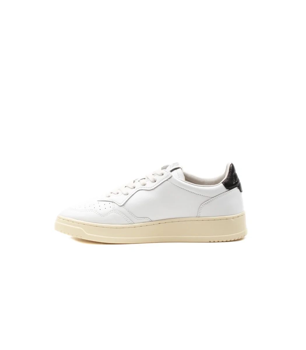 Sneakers Autry bassa Medalist in pelle liscia bianca e nero. Il modello Medalist, con un design vintage ispirato gli anni ’80 ha una tomaia in pelle, con punta traforata per il sudore. La fodera interna è in pelle e la suola è in gomma vintage. Modello uomo colore bianco con talloniera nera. Calzata abbondante, disponibili solamente numeri pieni in taglie europee. Codice: AULMLL22