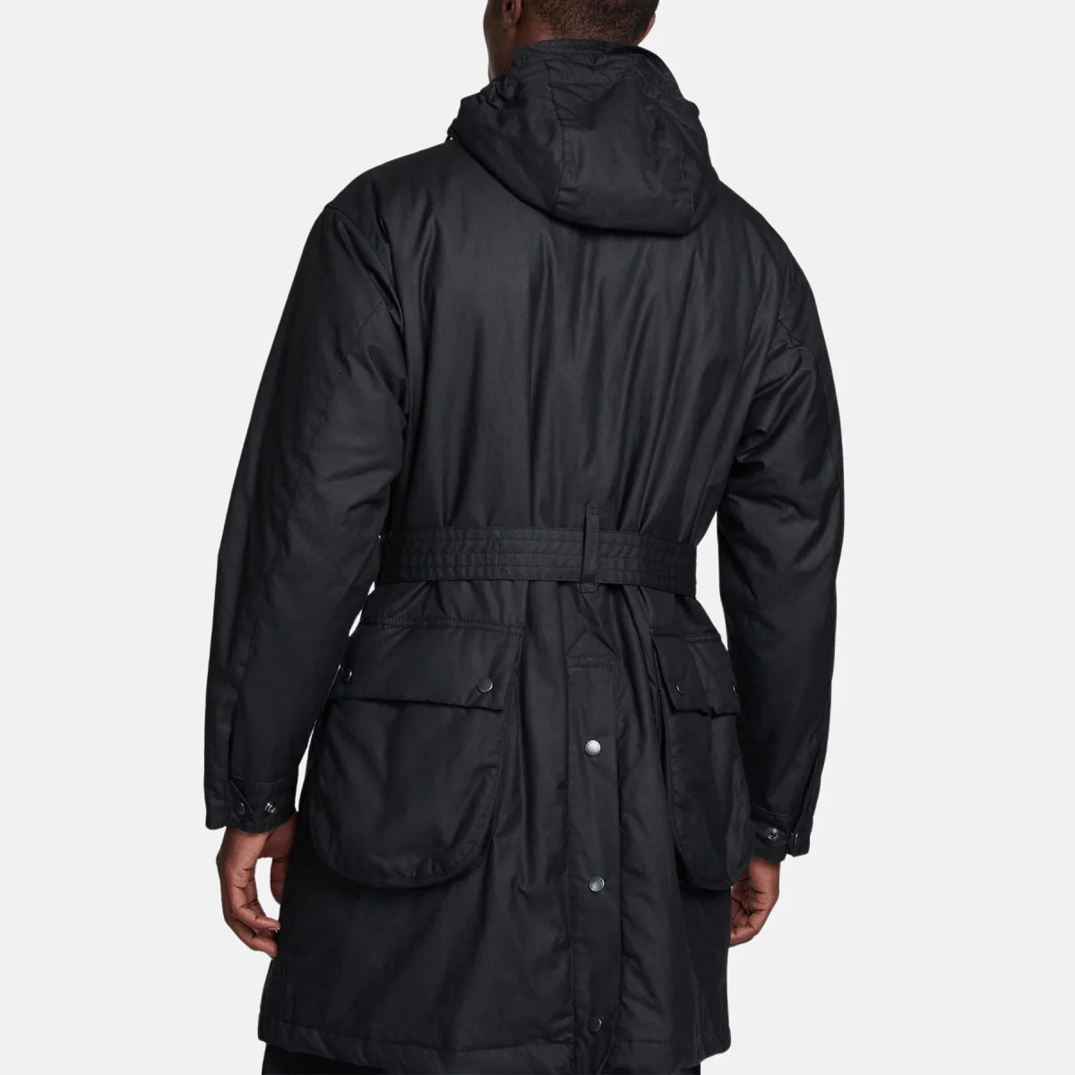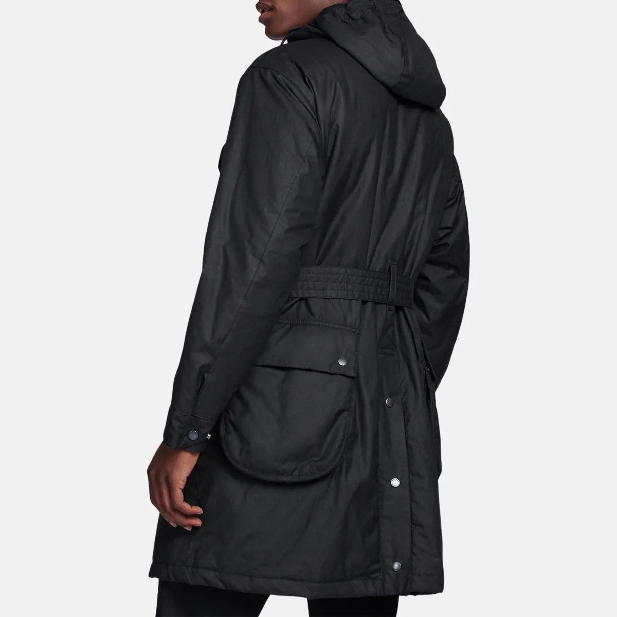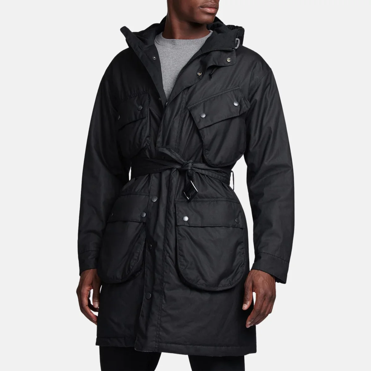Il parka cerato Barbour International Brookdale ha sei tasche a soffietto foderate in cotone e uno spacco posteriore con chiusura a bottone per un autentico stile da motociclista. Con uno stile parka con cappuccio e carré posteriore interno in lana, questa giacca presenta una cintura regolabile con chiusura con fibbia per un capospalla versatile. L’etichetta Barbour International x Engineered Gartments è presente sotto la patta della tasca sul petto.