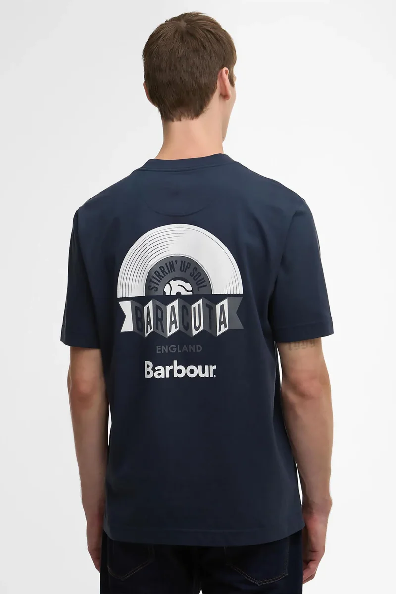 La T-shirt oversize Vinyl firmata Barbour x Baracuta aggiunge un vero tocco di carattere al tuo look da tutti i giorni. Caratterizzato da una grande stampa in vinile sulla parte posteriore e da due piccoli loghi sulla parte anteriore, questo capo è perfetto per aggiungere la giusta dose di audacia ai tuoi outfit.