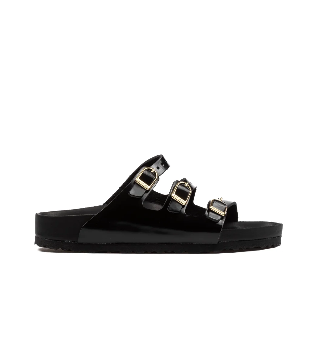 Stile essenziale, comfort totale. Le Birkenstock Florida Hexquisite nere reinterpretano uno dei modelli più iconici del brand in chiave elegante e minimale. La tomaia total black con tripla fascia regolabile e fibbie tono su tono si distingue per il look moderno e raffinato, perfetto per chi cerca un’estetica clean ma di carattere. Dotate dell’iconico plantare anatomico in sughero e lattice, queste ciabatte Birkenstock da donna offrono un supporto naturale al piede, ideale per l’uso quotidiano. La suola in EVA leggera e flessibile garantisce ammortizzazione e stabilità a ogni passo. Perfette per completare look urban, minimal o vacanzieri, sono la scelta ideale per chi cerca sandali Birkenstock donna neri a tre fasce, comodi e stilosi in ogni contesto.