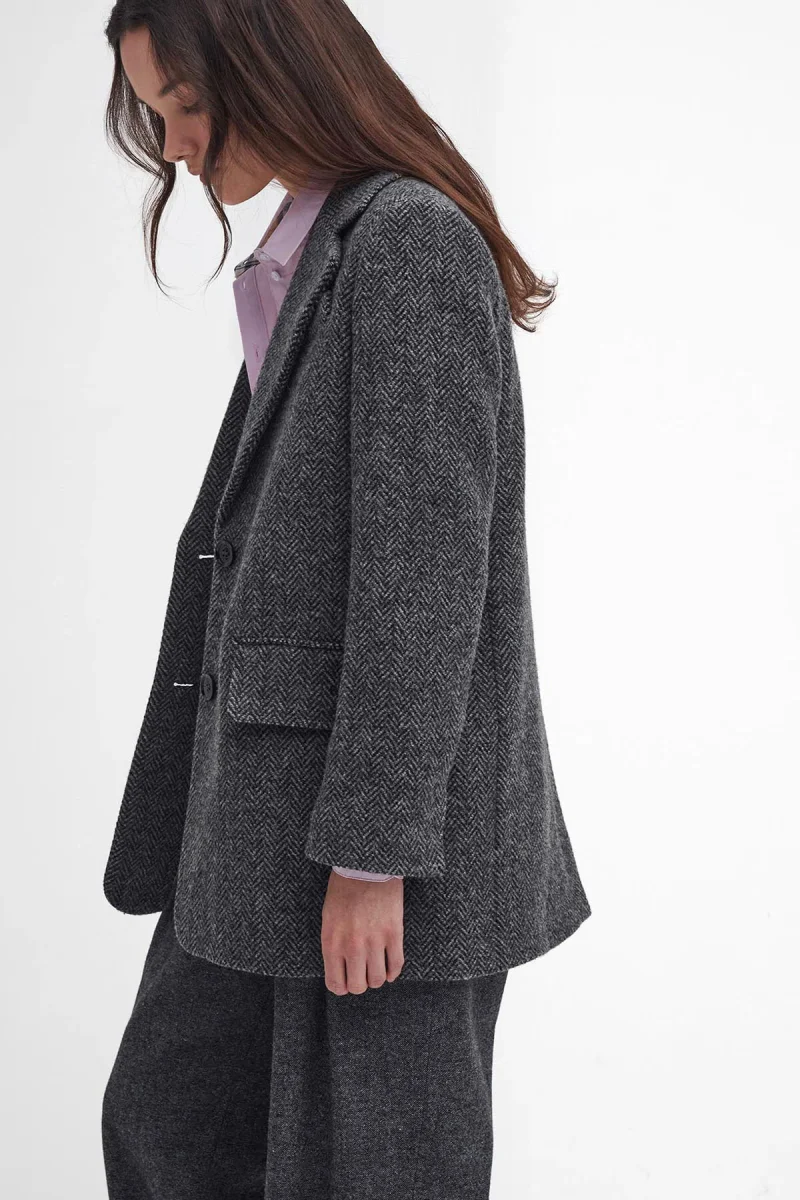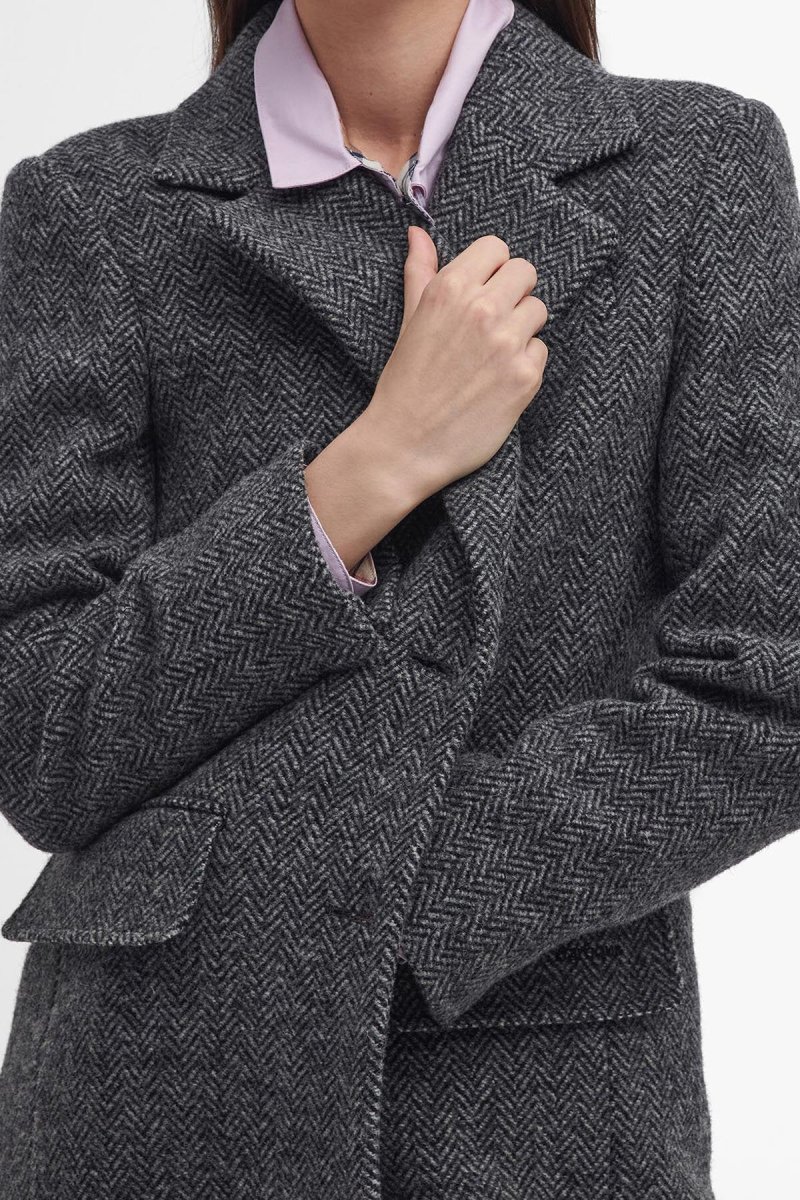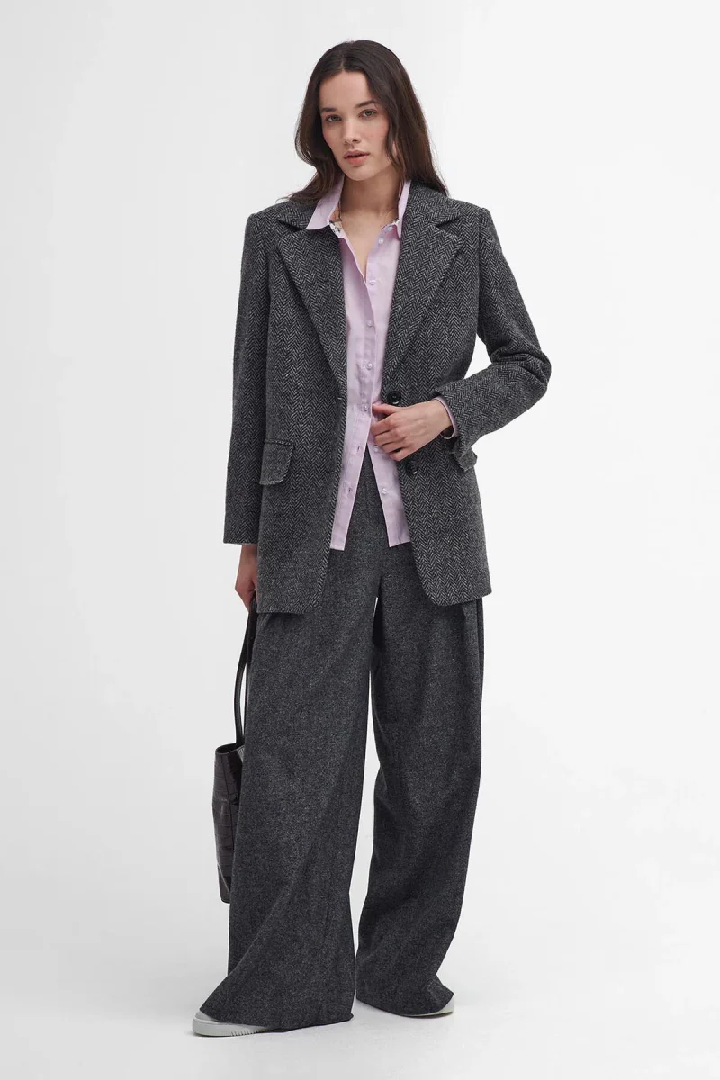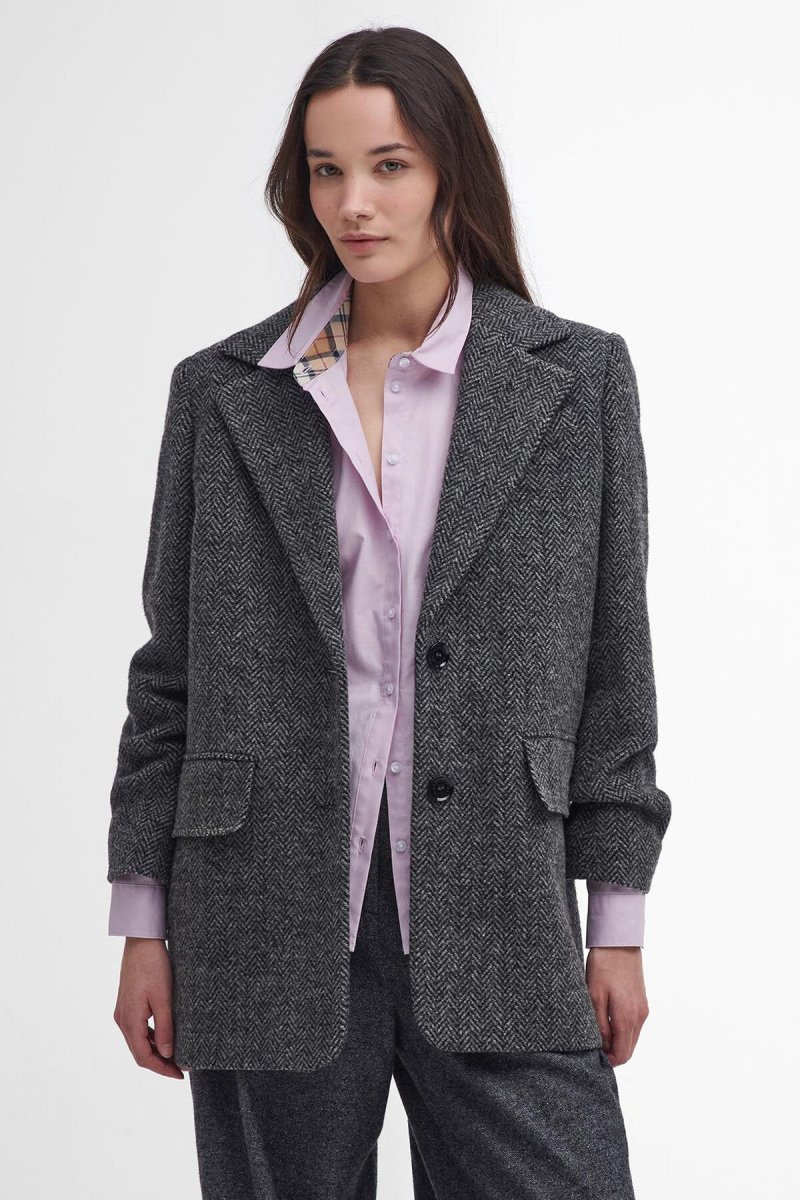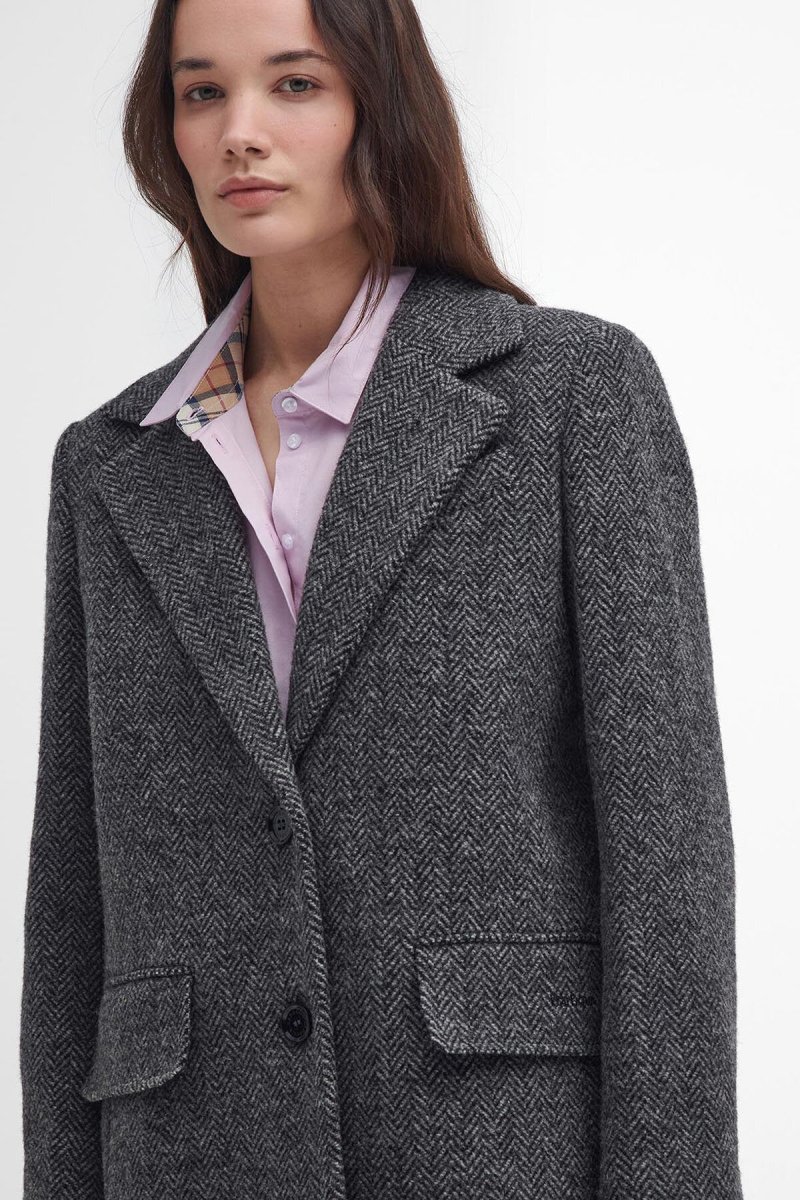 Connubio perfetto tra la silhouette classica di un capo sartoriale e il calore di un capospalla invernale, il Blazer Paulette Mensy di Barbour è perfetto per aggiungere un tocco raffinato al guardaroba della donna moderna. Realizzato in pura lana, questo modello monopetto è caratterizzato da un taglio dritto e un motivo a spina di pesce tono su tono.