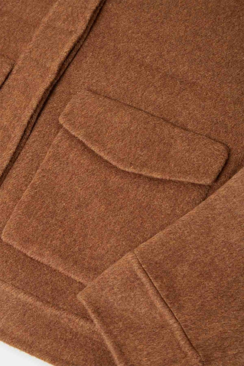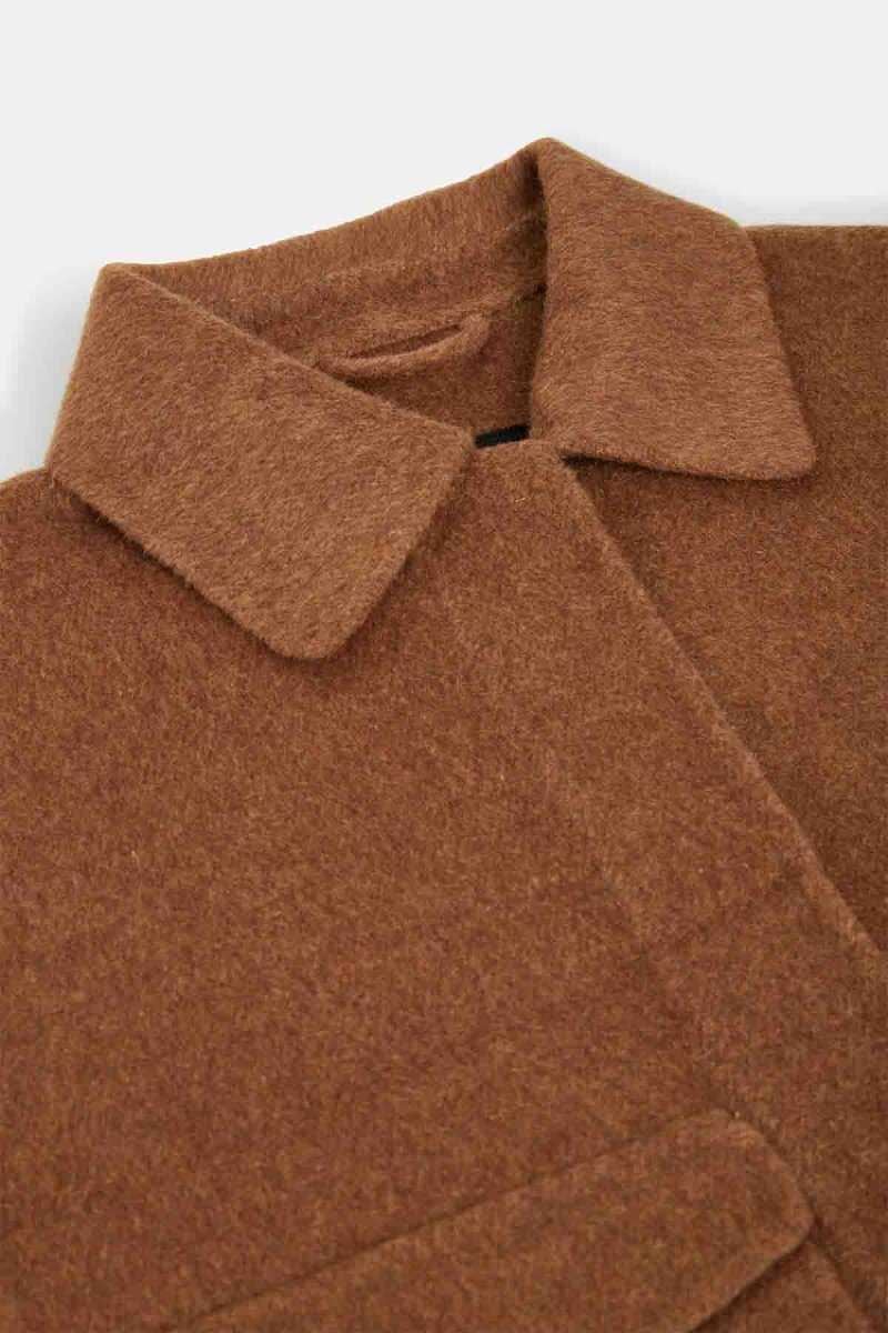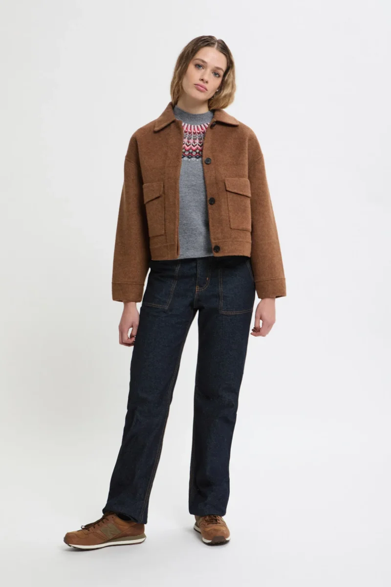 Questa stagione, la nostra giacca corta Mathilda in lana double-face è realizzata con cura per offrire comfort ed eleganza. Questa giacca presenta due ampie tasche applicate con patta, ideali per un tocco pratico ed elegante, e una bella etichetta in maglia sul colletto aggiunge un tocco sofisticato.
