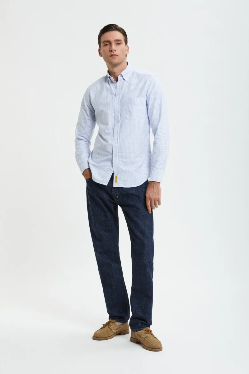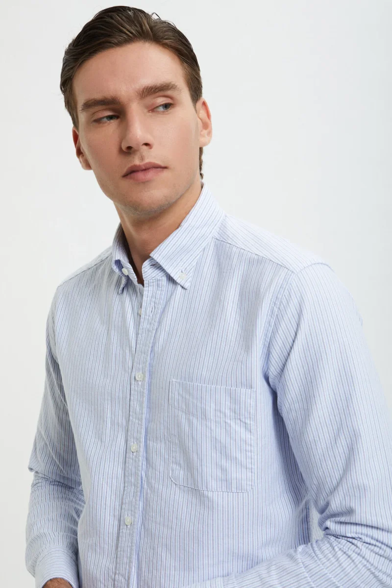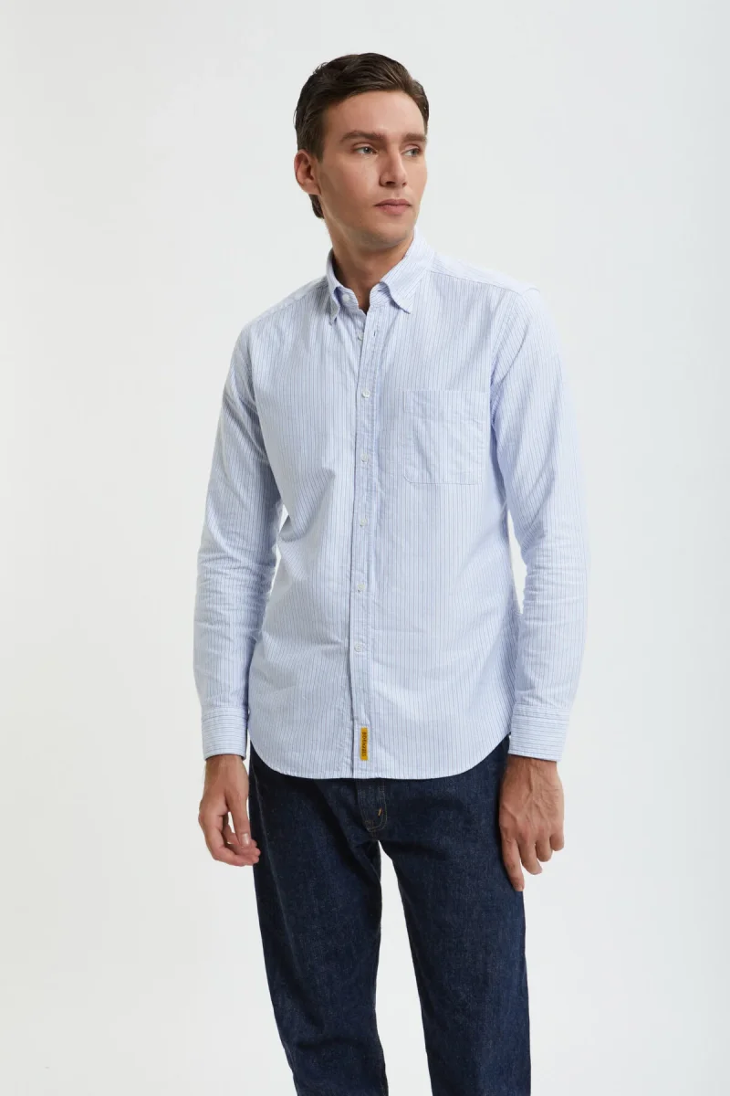 Camicia Bradford realizzata in tessuto oxford US a fantasia a righe, con collo button down e taschino sul petto.