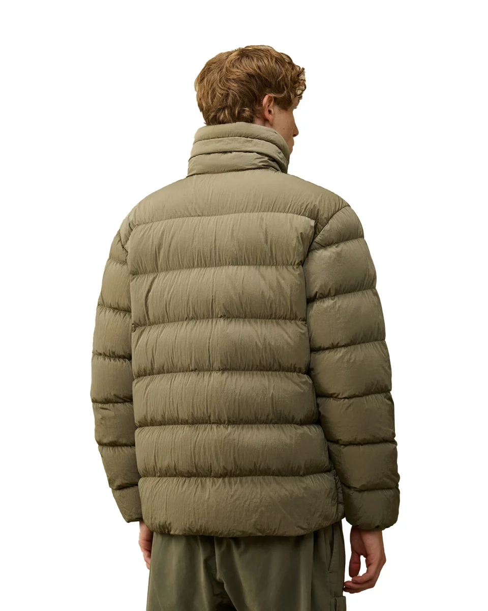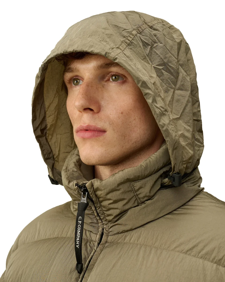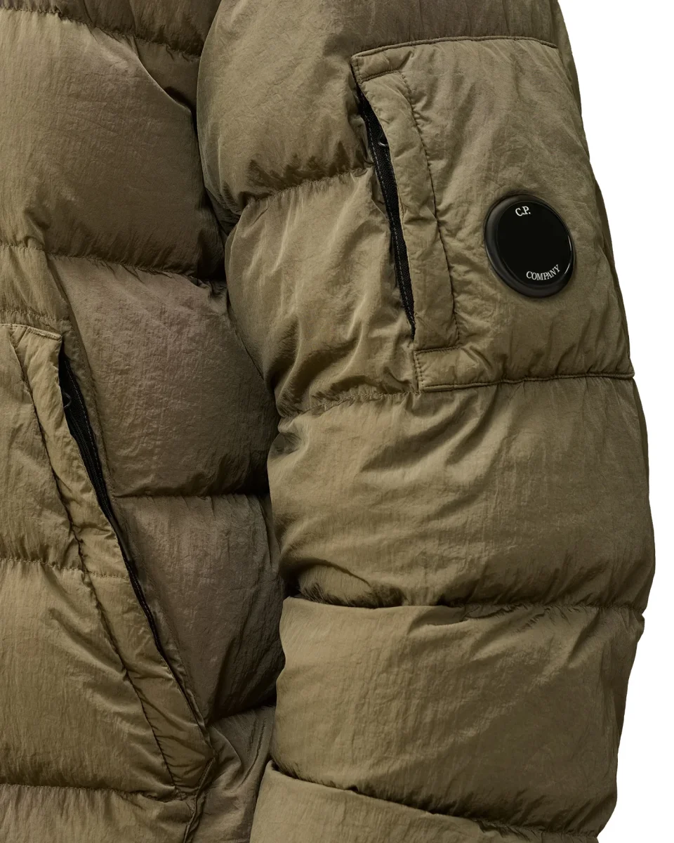 Giacca C.p. Company modello chrome-r down realizzato in multifilamento lucido 100% riciclato. Trattamento waterproof su tutta la giacca. Dettaglio cappuccio estraibile e chiusura zip frontale con doppio cursore. Comode tasche laterali e dettaglio lente ricamato lungo la manica vestibilità regolare.