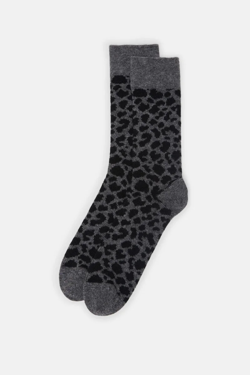 Questi calzini a motivo leopardato reinterpretano un classico pattern maculato con un tocco moderno e disinvolto. Realizzati in lana Merino morbida e confortevole, offrono calore e traspirabilità, risultando ideali per l’uso quotidiano. La fantasia tono su tono aggiunge un accento grafico e deciso, rendendoli un accessorio versatile da abbinare sia a look casual sia più ricercati.