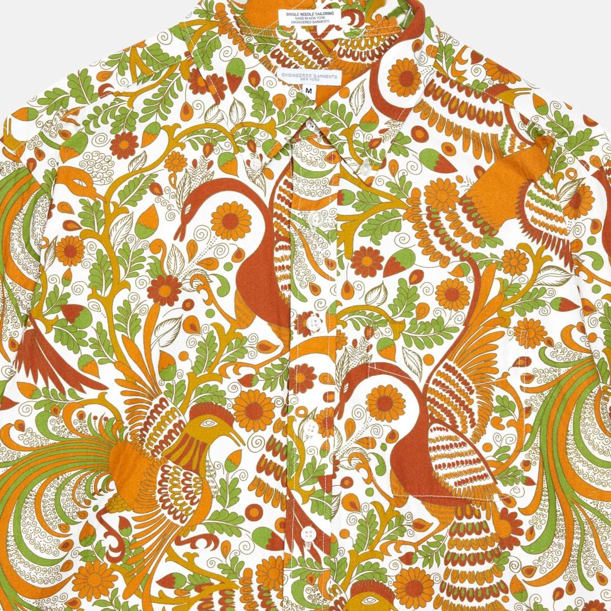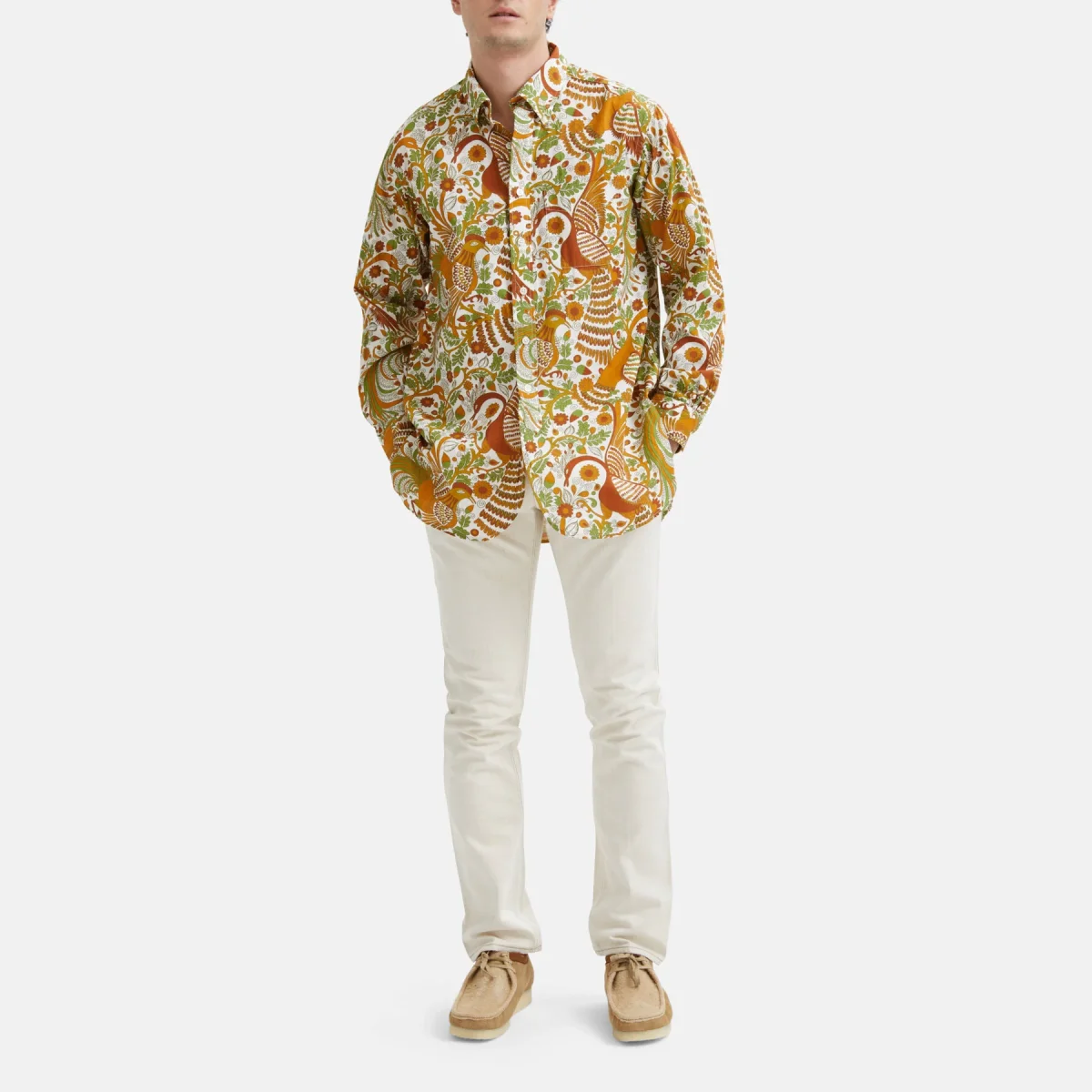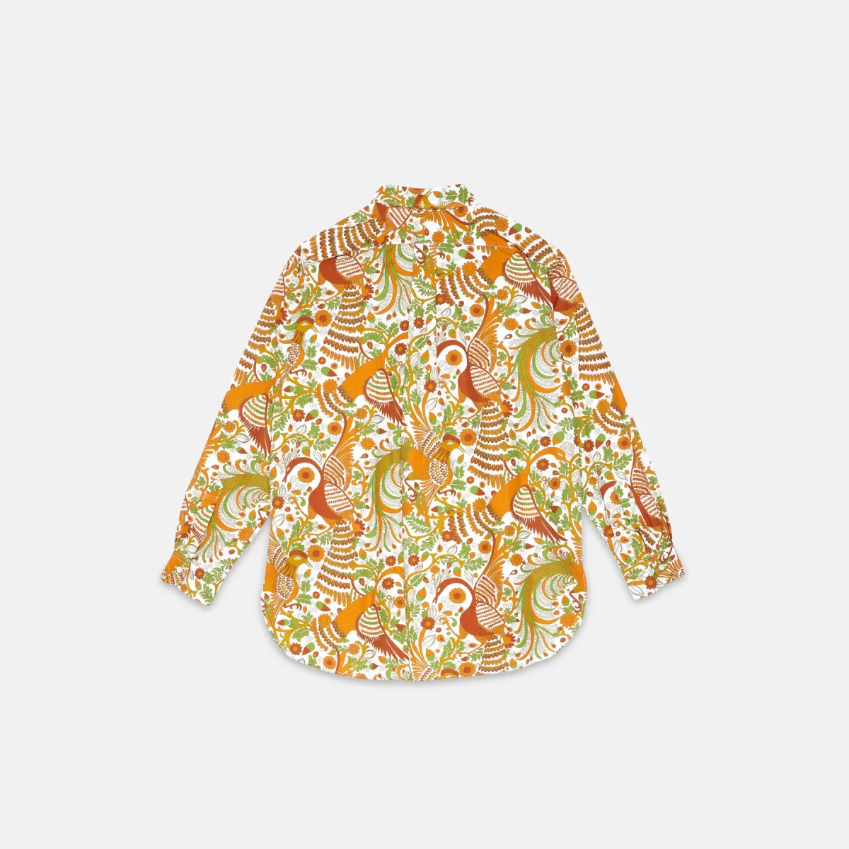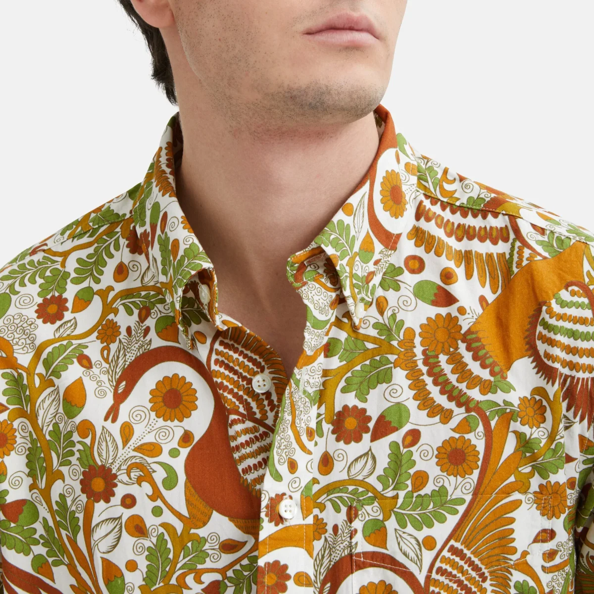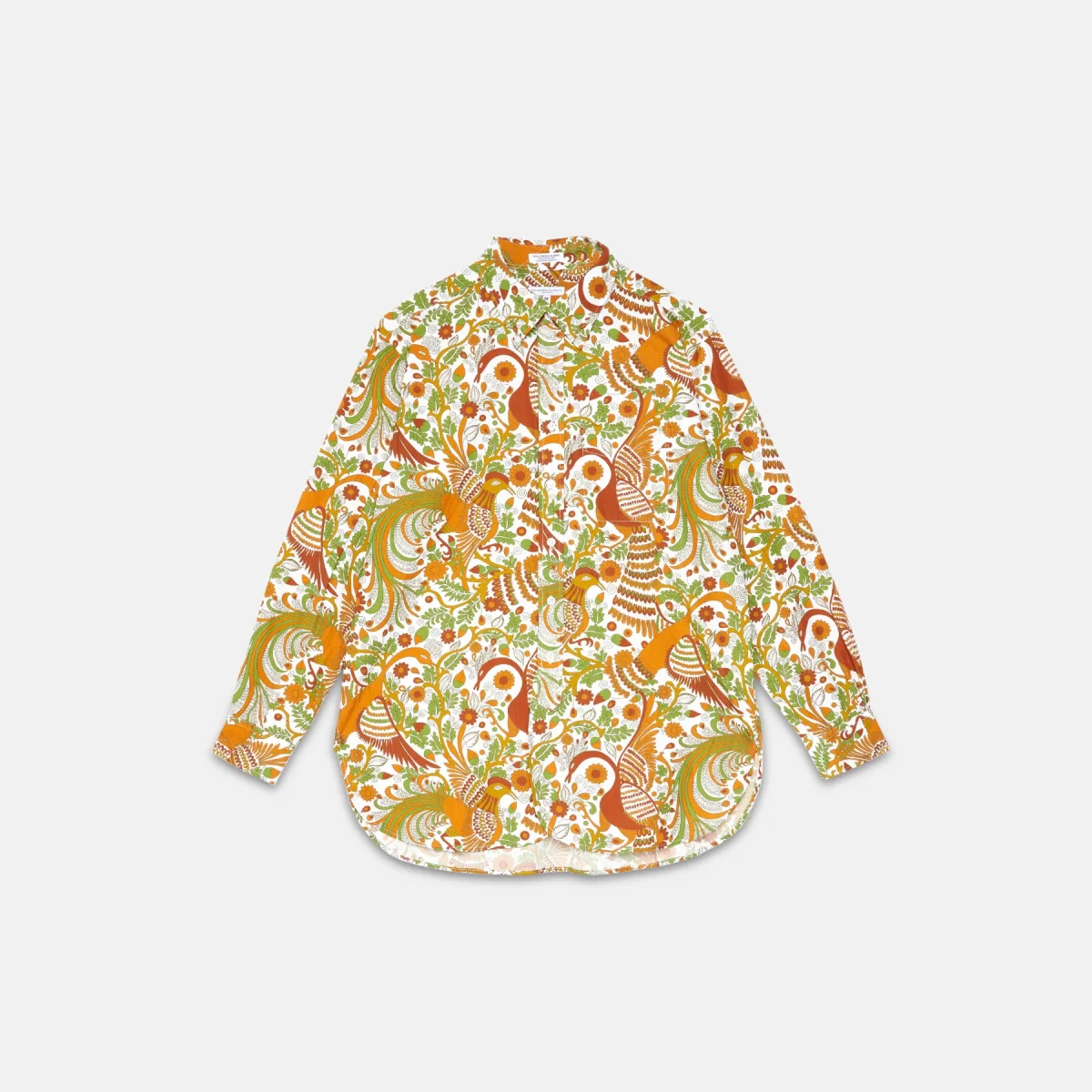 Questa camicia in cotone a fantasia presenta una serie di dettagli distintivi, come l’orlo arrotondato e i profondi spacchi laterali.