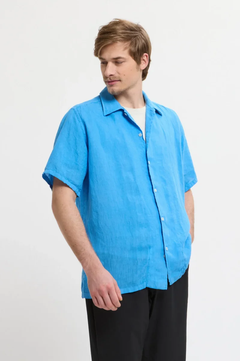 La camicia Aloha in lino azzurro incarna lo spirito dell’estate con il suo design leggero e rilassato. Realizzata in puro lino, è perfetta per affrontare le giornate più calde con freschezza e stile. Il taglio ampio, le maniche corte e il colletto aperto conferiscono un tocco casual e senza tempo, mentre la chiusura con bottoni bianchi aggiunge un dettaglio raffinato. Ideale per un look vacanziero o urbano, questa camicia è un must-have per chi ama un’eleganza disinvolta e naturale.