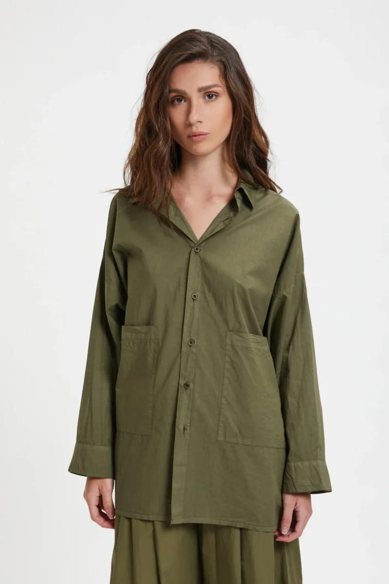 Camicia di Labo.Art in popeline di cotone leggero con bottoni e due tasche frontali. Made in Italy.