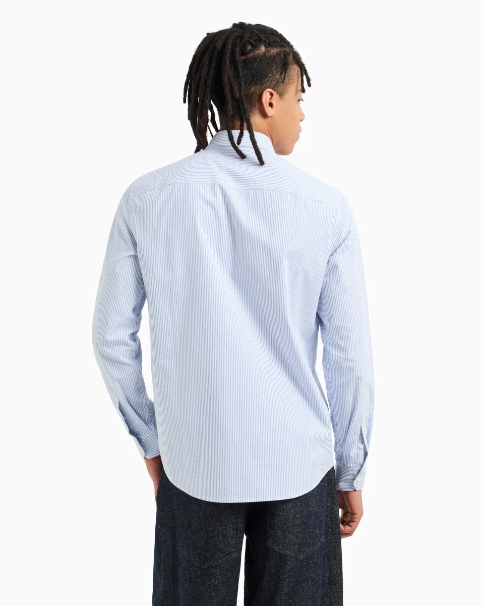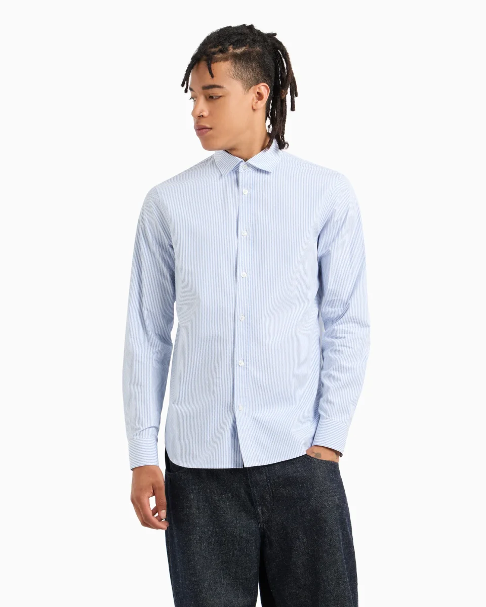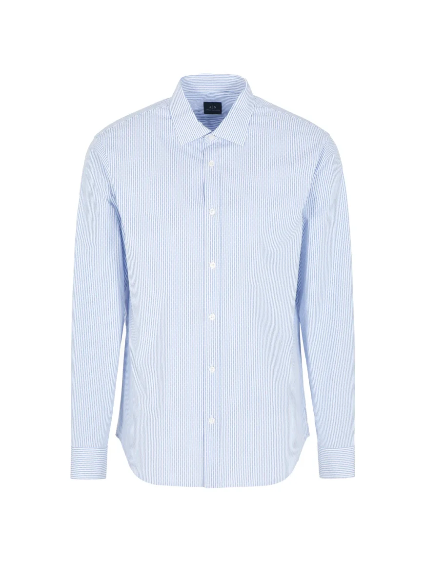 Camicia di Armani Exchange a bacchetta in fantasia nel colore celeste e tessuto 100% cotone.