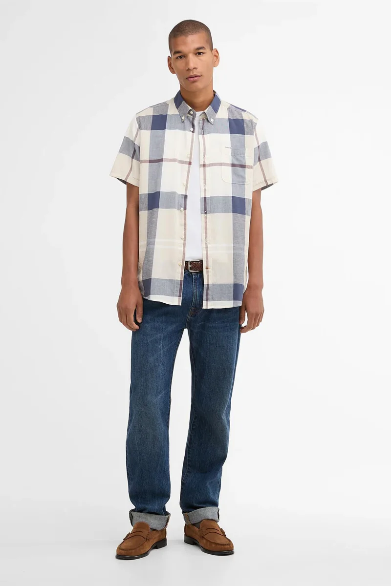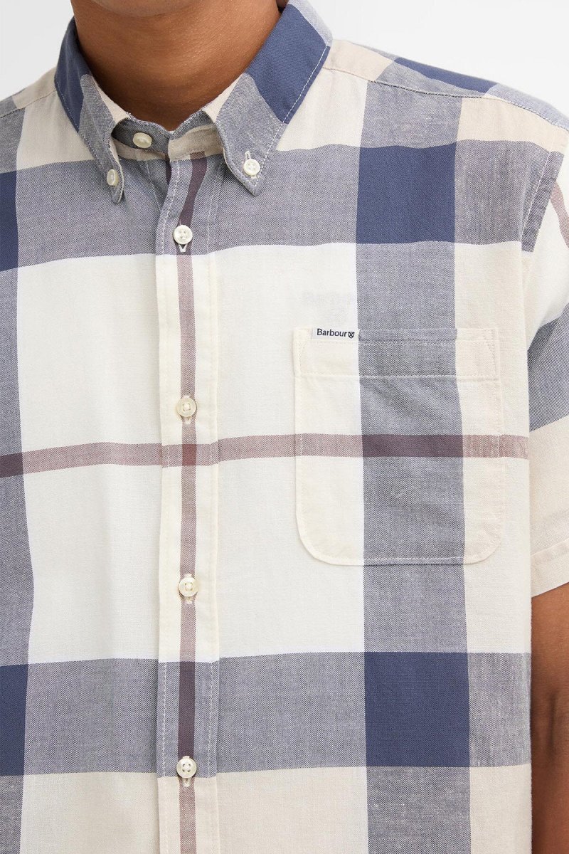 La camicia a maniche corte Barbour Douglas è realizzata nel classico motivo tartan. Con un colletto button down, questa camicia è realizzata in misto cotone e lino per un comfort unico ed è rifinita con Presenta una stampa con marchio Barbour sulla tasca sinistra sul fronte.