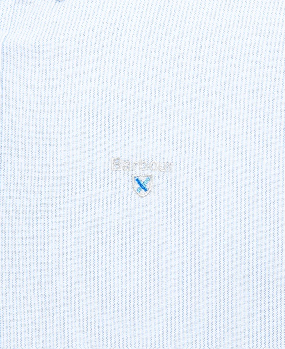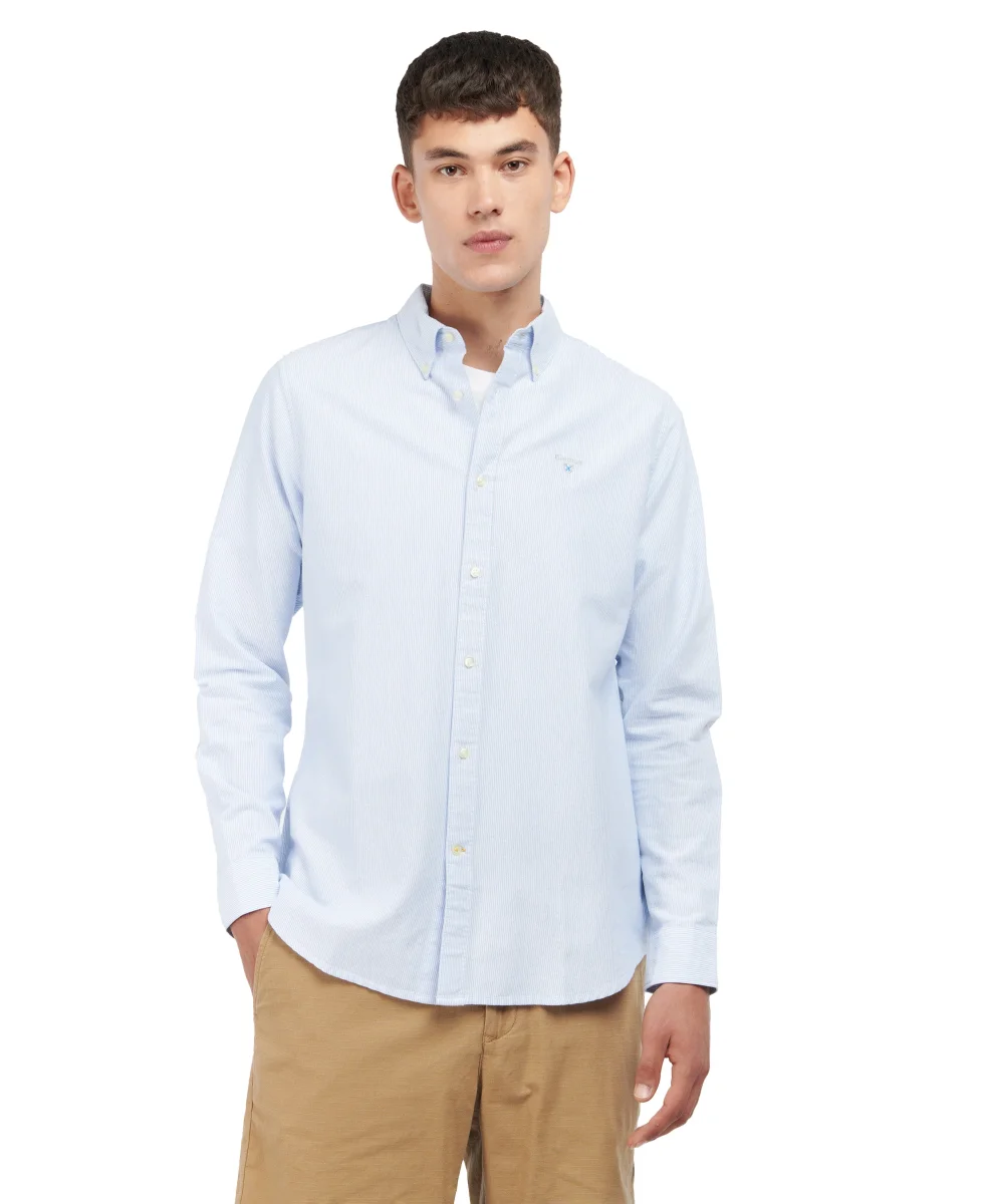 Camicia Barbour colore celeste da uomo con chiusura a bottoni frontale e logo ricamato.
