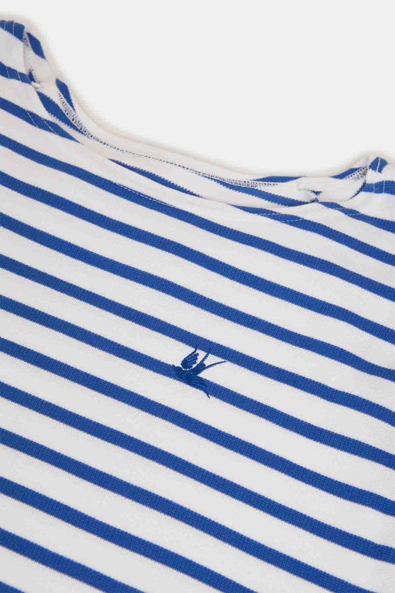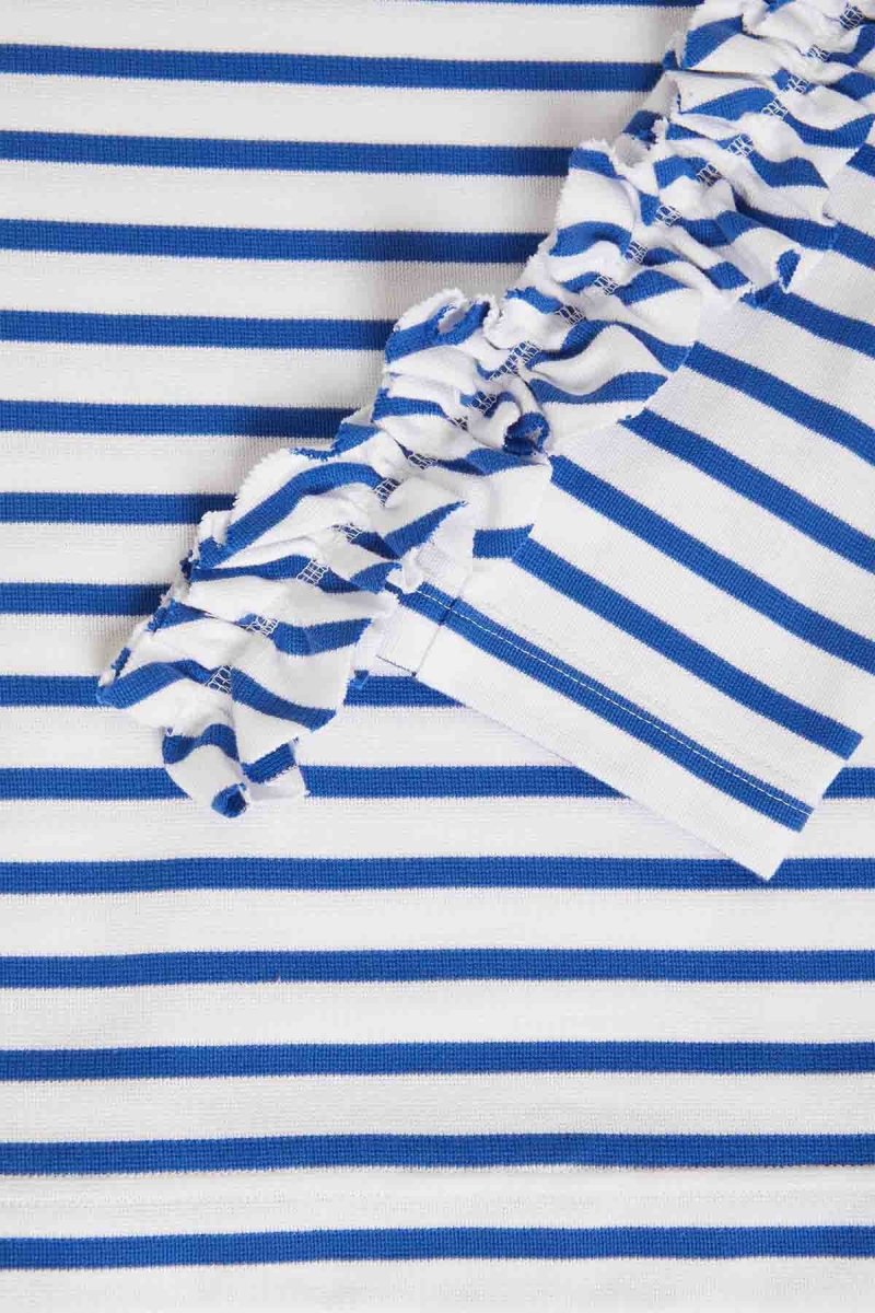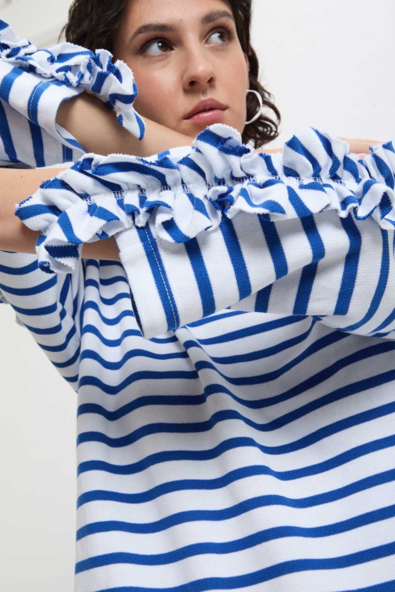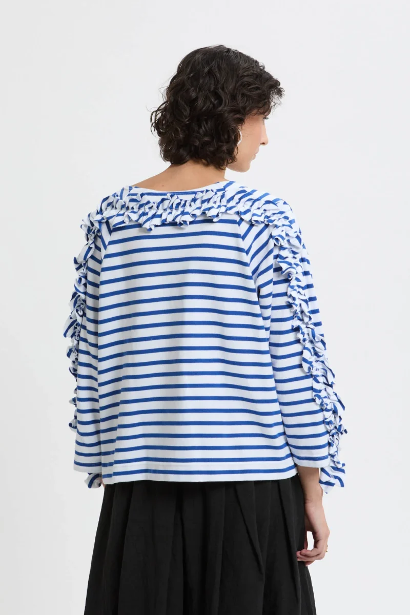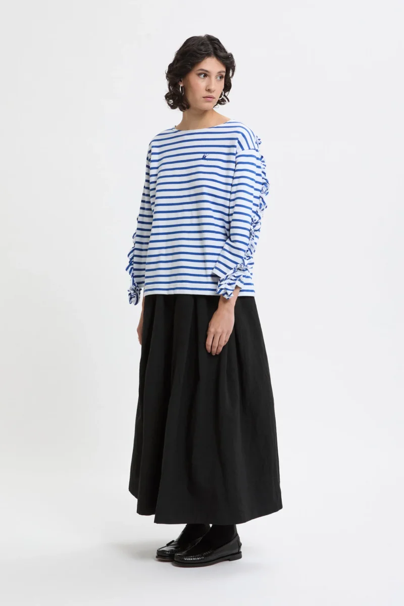Questo top dal design essenziale presenta il ricamo iconico della rondine di . Ampi volant sono applicati a spirale, partendo dai polsi e arrivando fino al retro. Pur trattandosi di una semplice camicia basca, i volant creano un effetto scenografico da ogni angolazione.