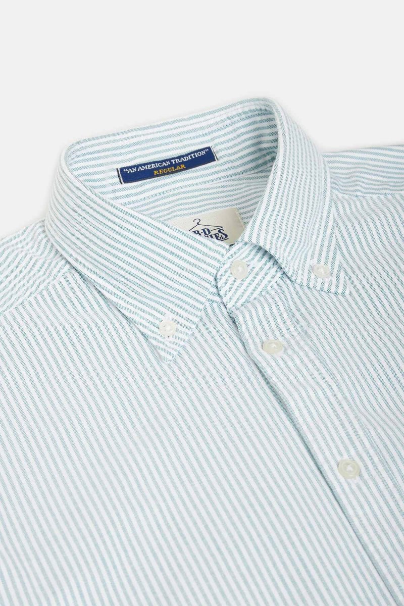 Realizzata in un cotone morbido e traspirante, questa camicia offre un comfort naturale e uno stile essenziale. Il motivo a sottili righe verdi su fondo bianco dona un tocco fresco e raffinato, ideale per un look pulito e versatile.