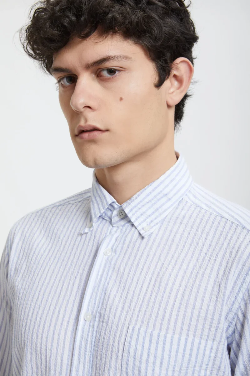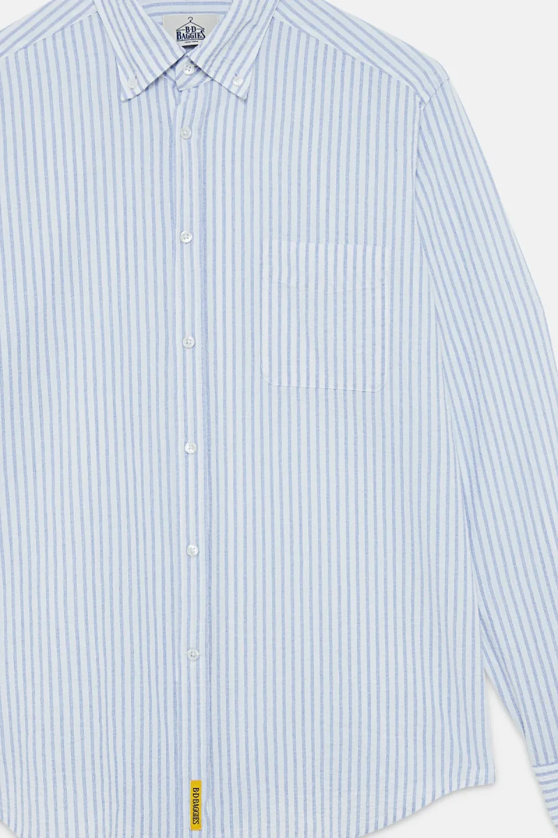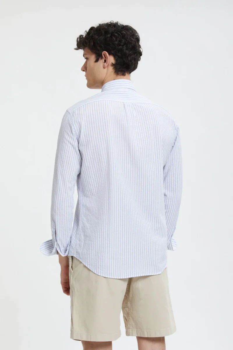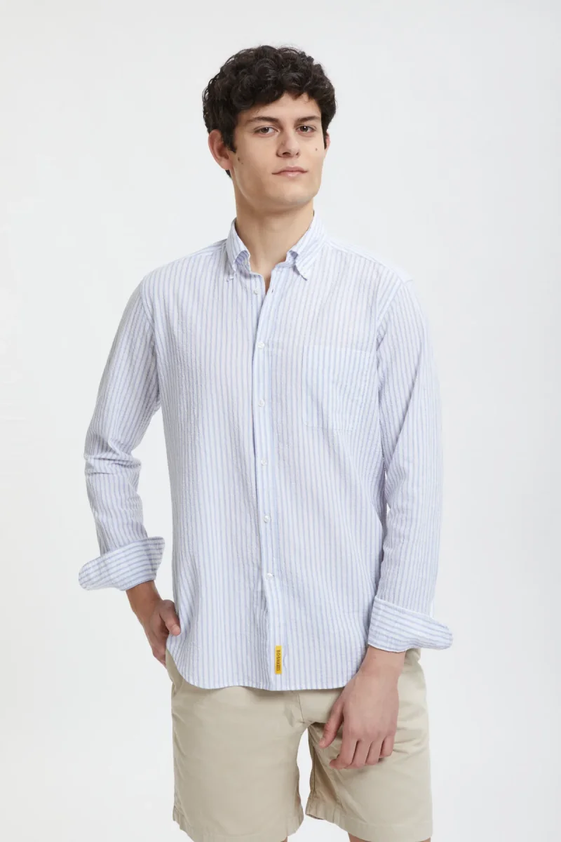 Perfetta per le tue serate estive speciali, oppure per i tuoi look casual, questa camicia Bradford di B.D. Baggies in cotone Seersucker a righe è un vero must-have per la primavera e l’estate. Il colletto con chiusura button-down rifinisce il capo.