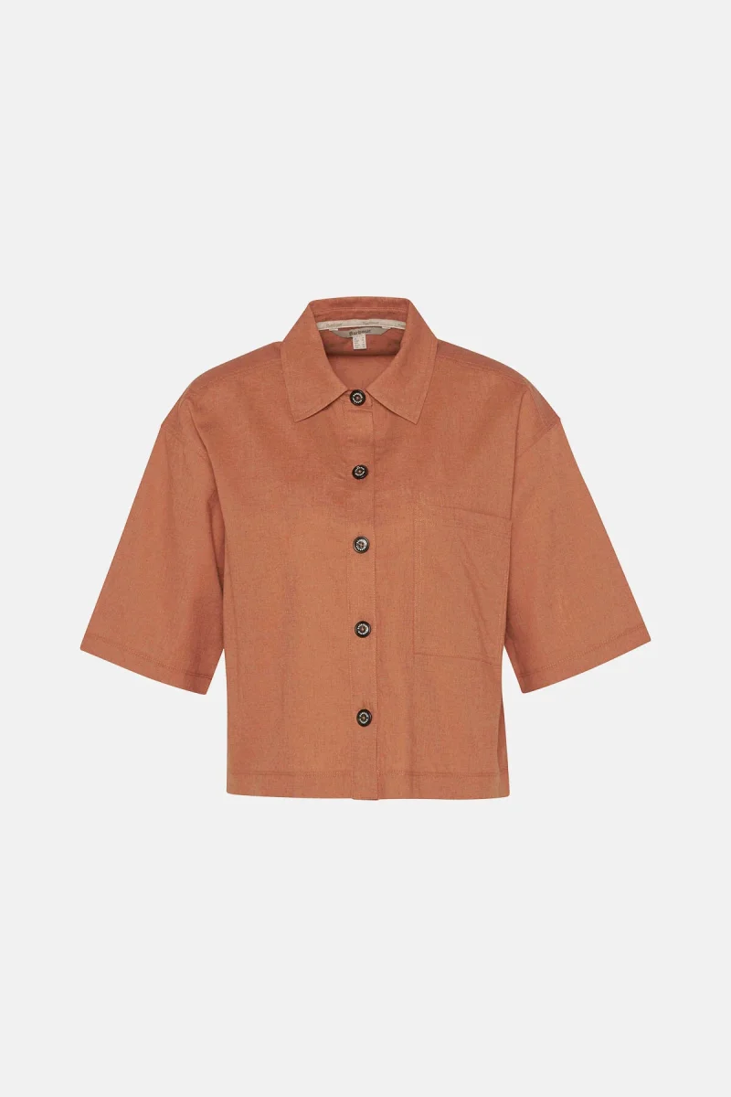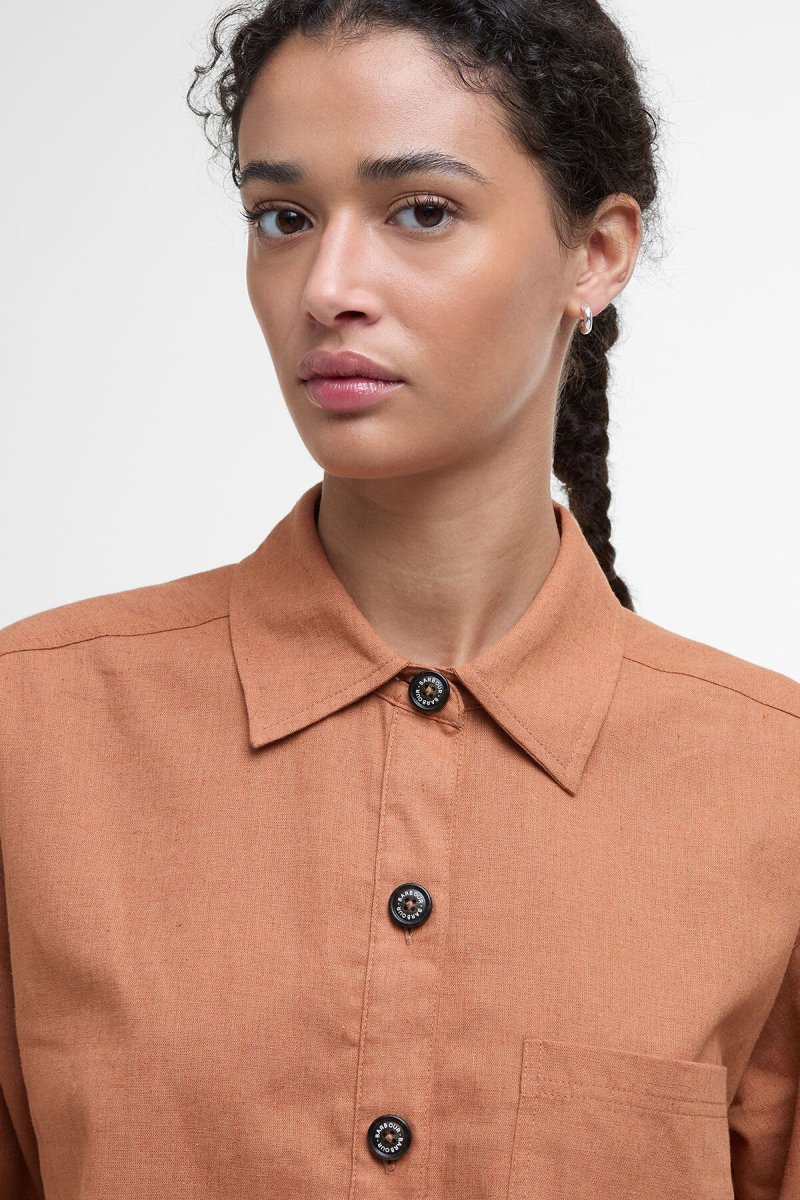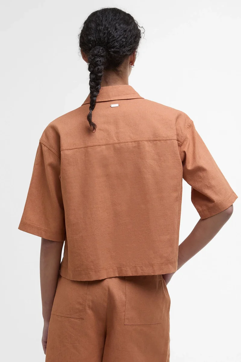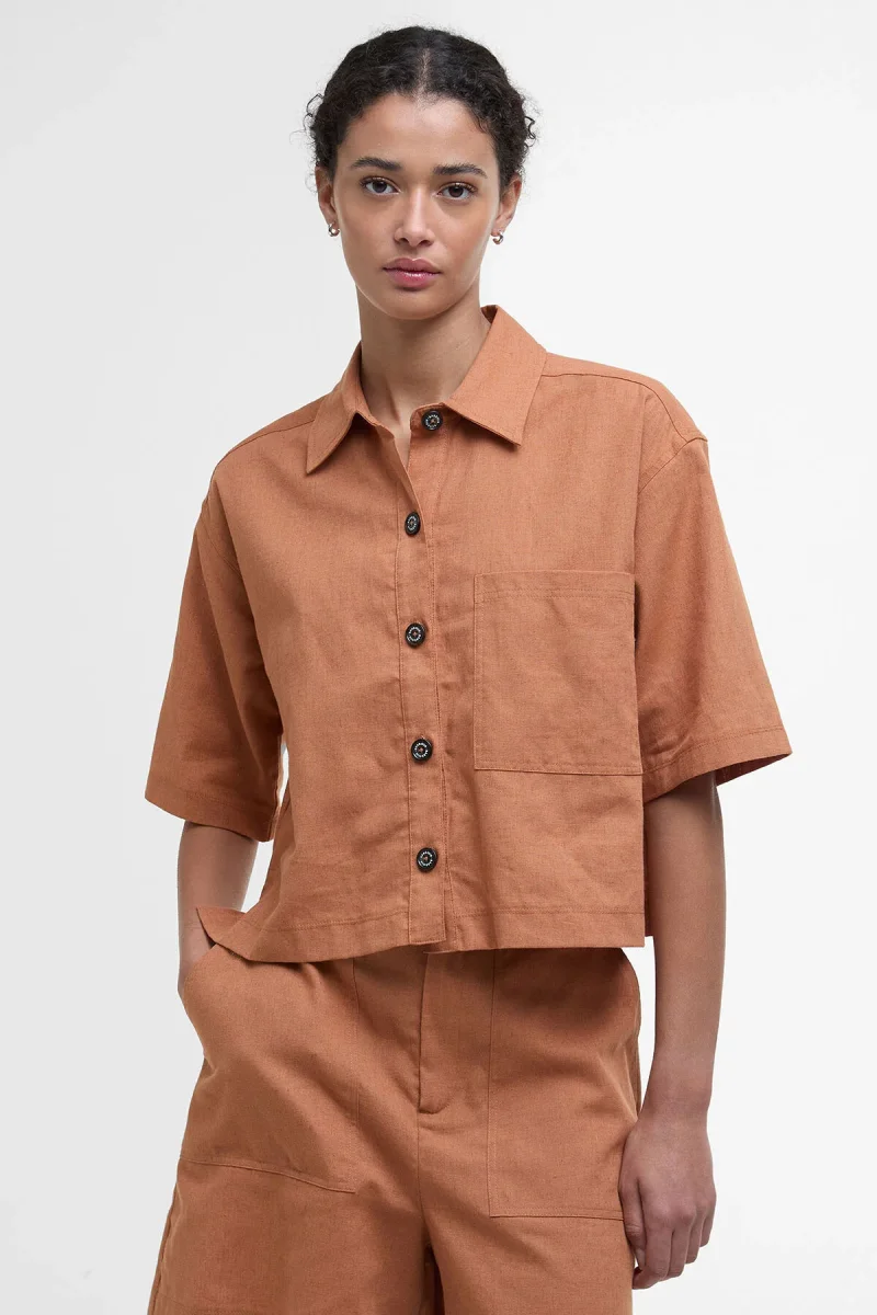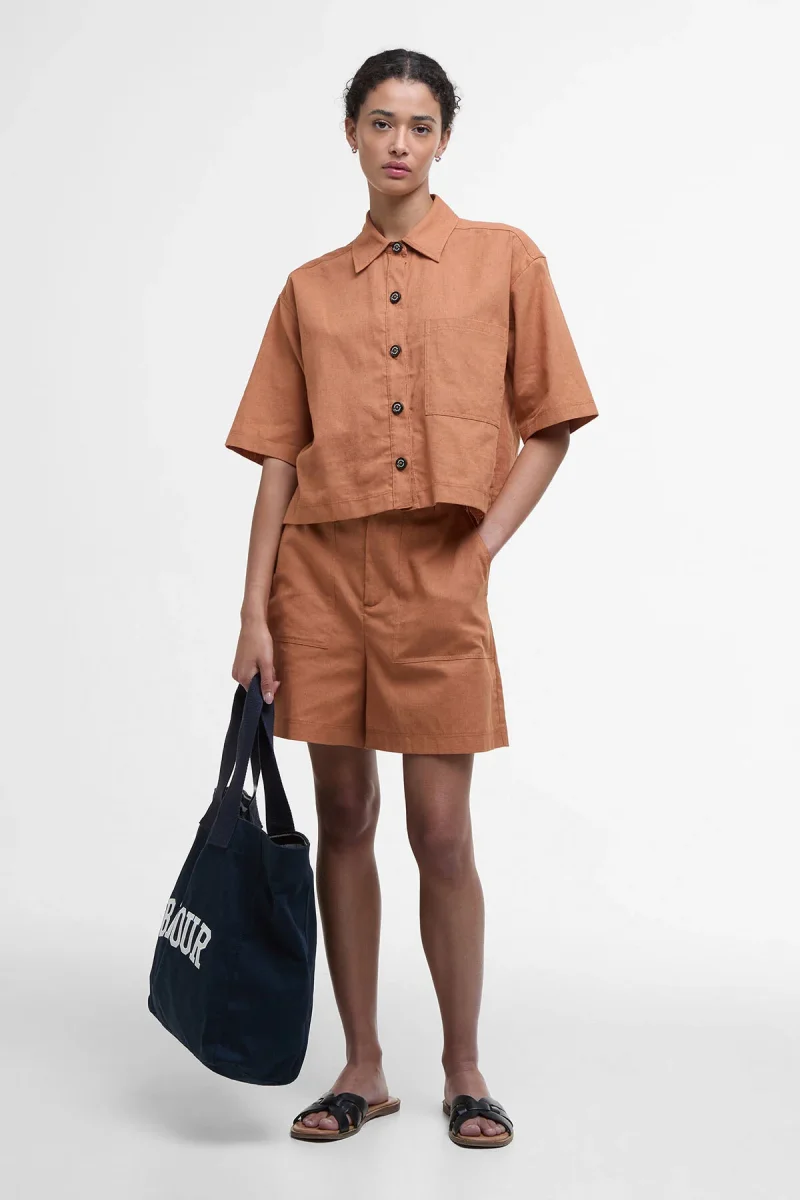 Perfetta per chi desidera aggiungere un tocco all’avanguardia al proprio guardaroba di capi country, la camicia Cary a maniche corte di Barbour infonde la giusta dose di modernità agli outfit più classici. Realizzato in leggero misto cotone e lino, questo modello dal taglio squadrato impreziosito da bottoni logati effetto corno e maniche cropped si abbina perfettamente agli shorts Cary coordinati, per un look davvero impeccabile.