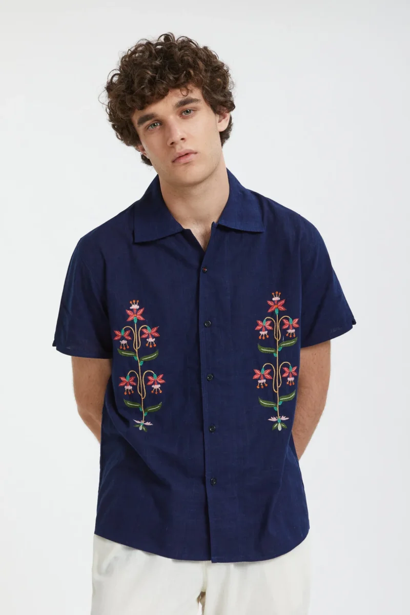 La camicia Chintan Camp ha una vestibilità oversize e maniche corte.