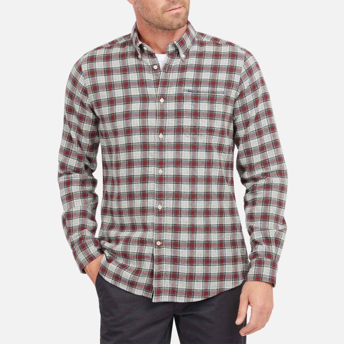 La camicia sartoriale Barbour Alderton ha maniche lunghe con un piccolo riquadro Highland. Realizzata con una trama twill spezzata, questa camicia offre una finitura a spazzola sui due lati per un look rilassato ed è rifinita con un’etichetta con marchio Barbour e Shield sulla tasca sul petto in alto a sinistra.