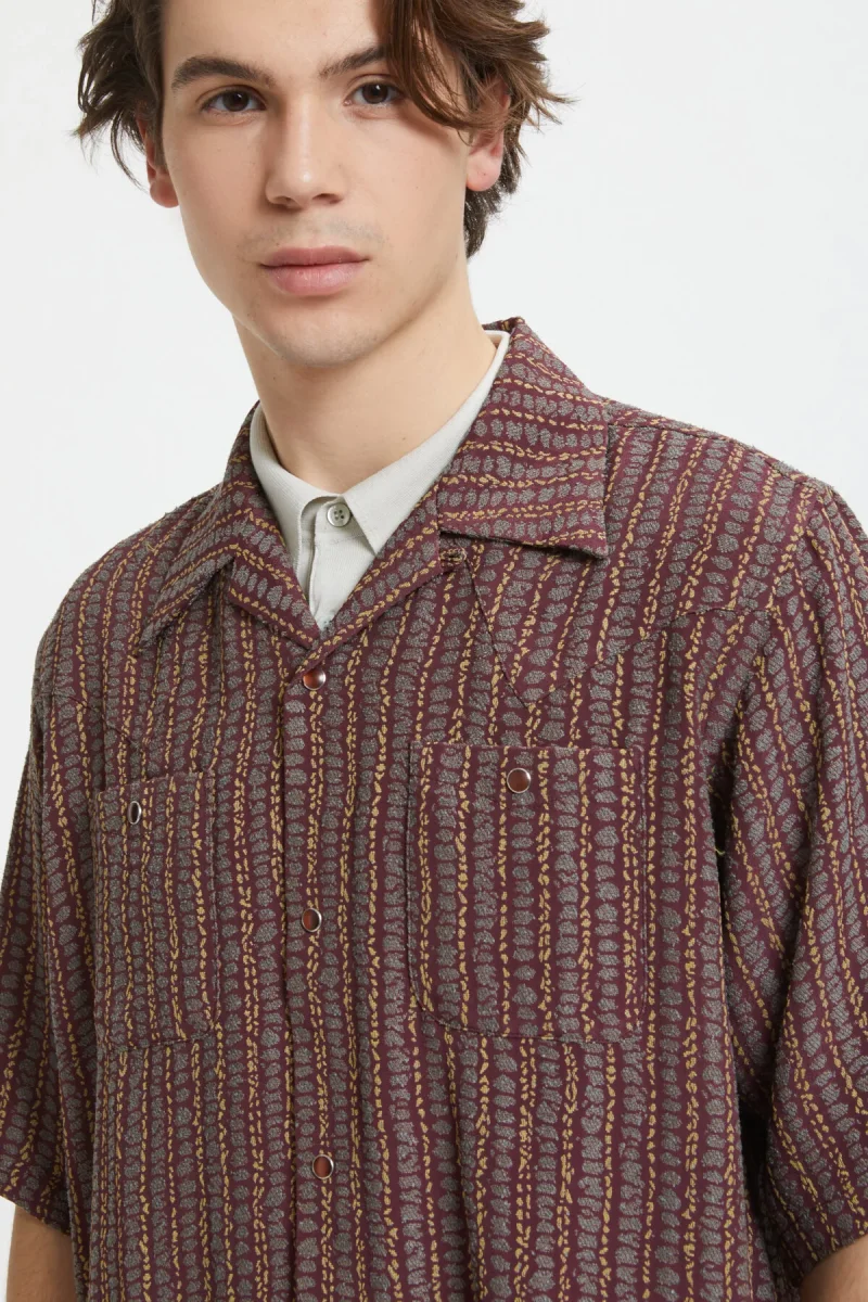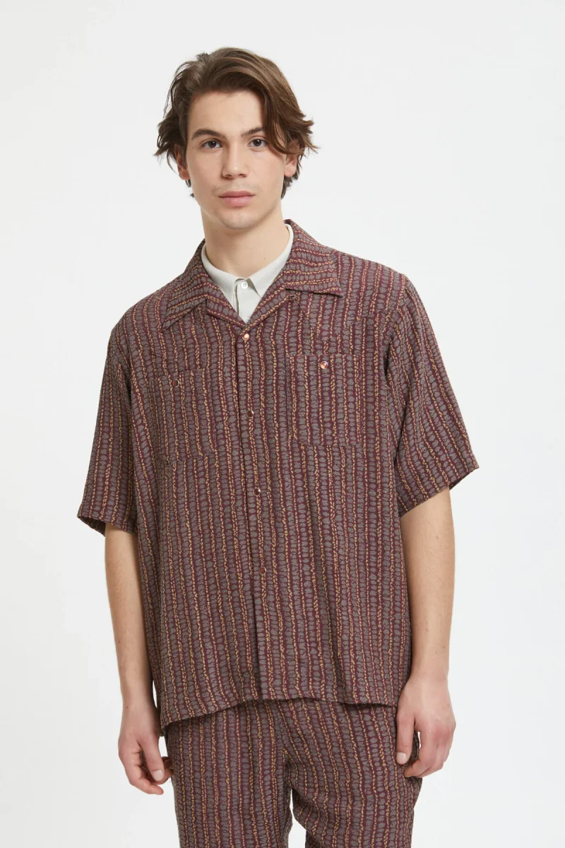Questa coloratissima camicia di Needles a maniche corte a righe è perfetta per le tue giornate estive. Leggera e traspirante, in un misto di viscosa e acetato, è il capo che assolutamente non può mancare nella valigia delle tue vacanze. Scegli questa camicia per completare i tuoi look casual e urban. Il capo è rifinito da dettagli curati come due taschine sul petto all’altezza del cuore.