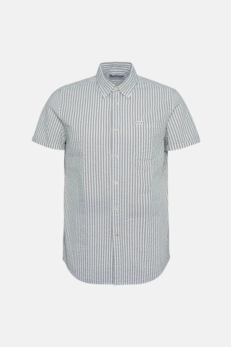 Caratterizzata da maniche corte con colletto button-down e tasca con bordo arrotondato in tessuto a sinistra sul petto, la camicia Cresswell in seersucker dalla vestibilità regular di Barbour presenta un classico motivo a righe. L’etichetta con logo Barbour a sinistra, sopra il taschino sul petto, completa il tutto con un discreto tocco finale.