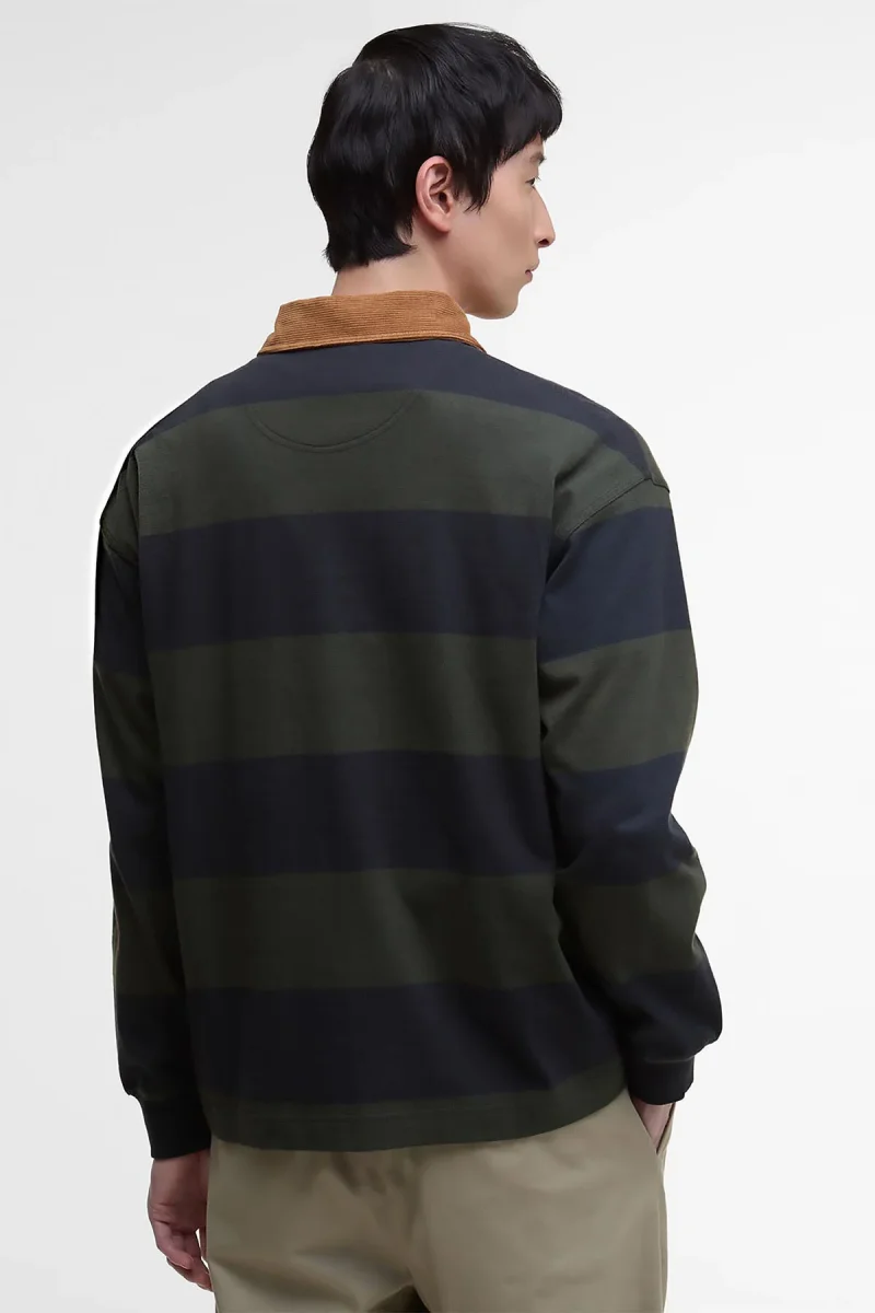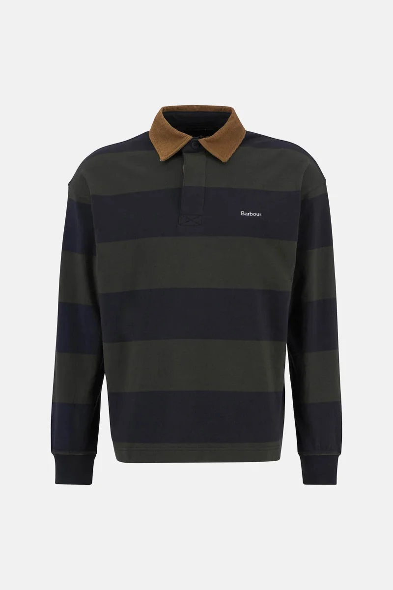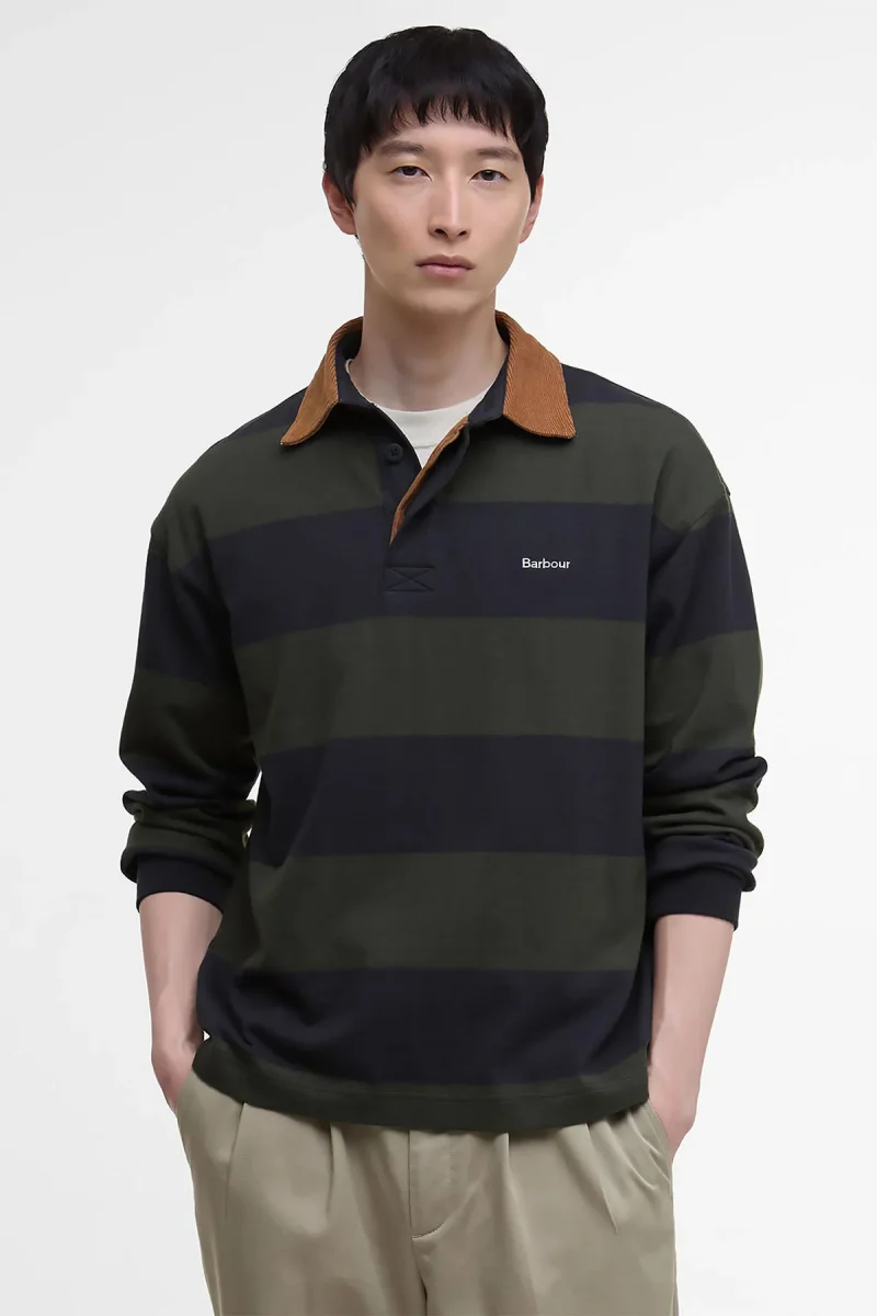 Oltre al classico colletto a coste a contrasto di ispirazione sportiva e al motivo a righe, la camicia da rugby oversize Newclose di Barbour a maniche lunghe presenta una chiusura nascosta con bottoni, per un look assolutamente impeccabile. Realizzato in morbido jersey di cotone per regalare un comfort eccezionale nelle occasioni più informali, il capo è impreziosito da un logo ricamato sulla parte superiore del petto, per un tocco finale discreto ma inconfondibile.