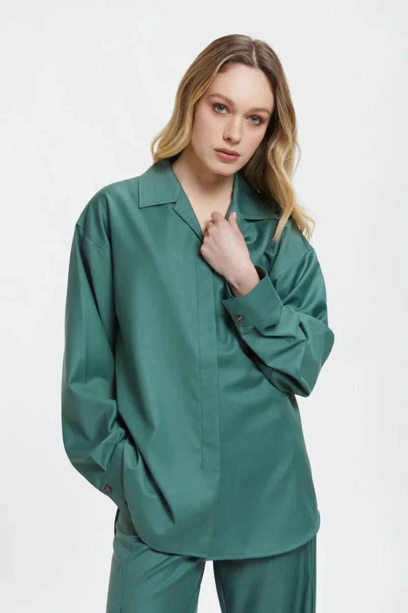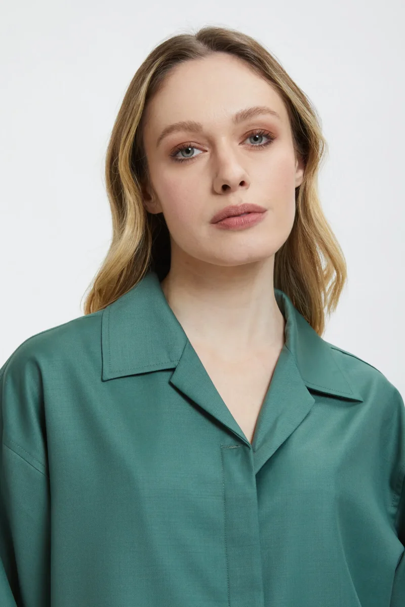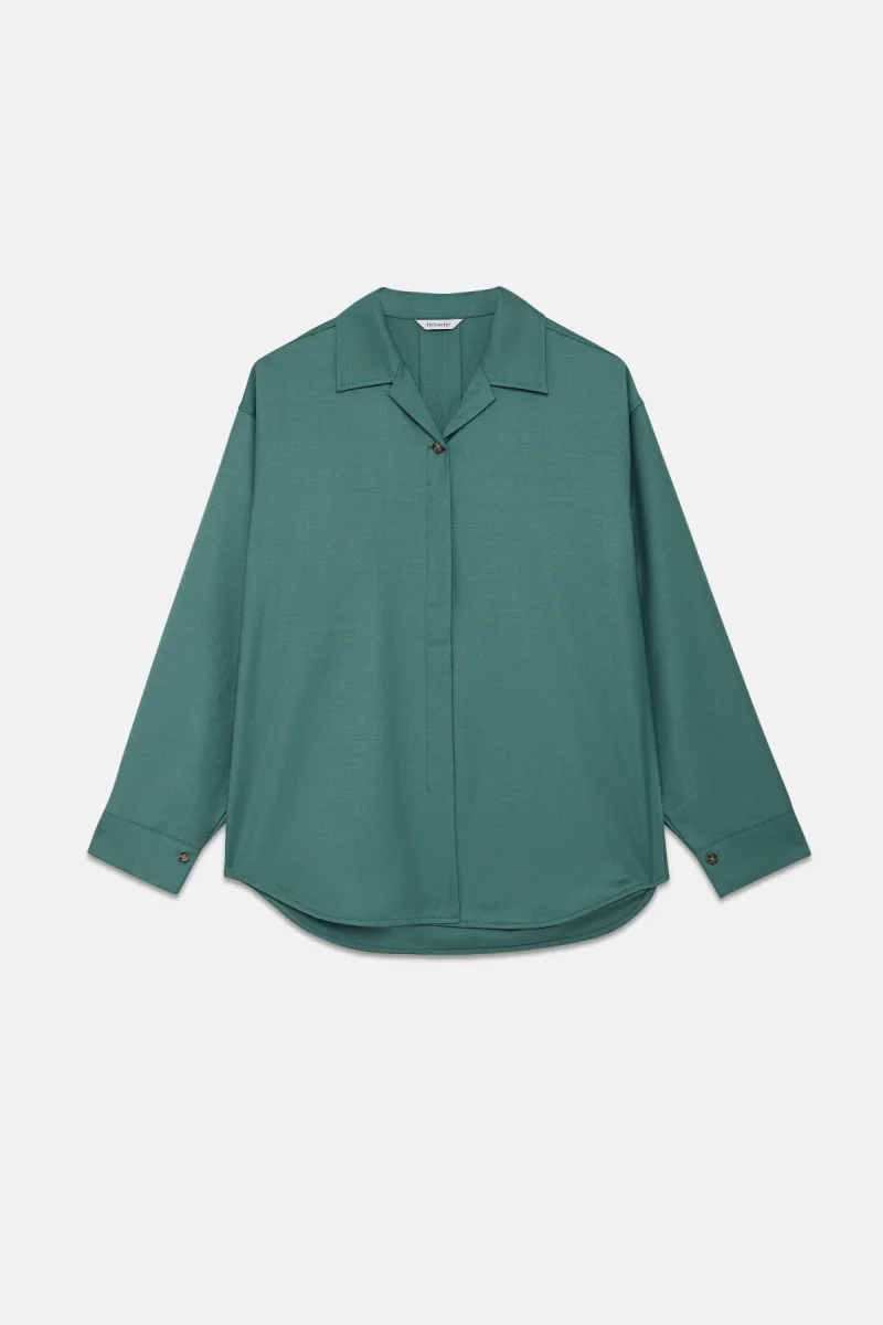 La camicia Dais di Holzweiler è realizzata in una calda miscela di lana. Presenta una silhouette oversize con collo classico, chiusura frontale con bottoni, fondo sagomato e dettagli con pinces.