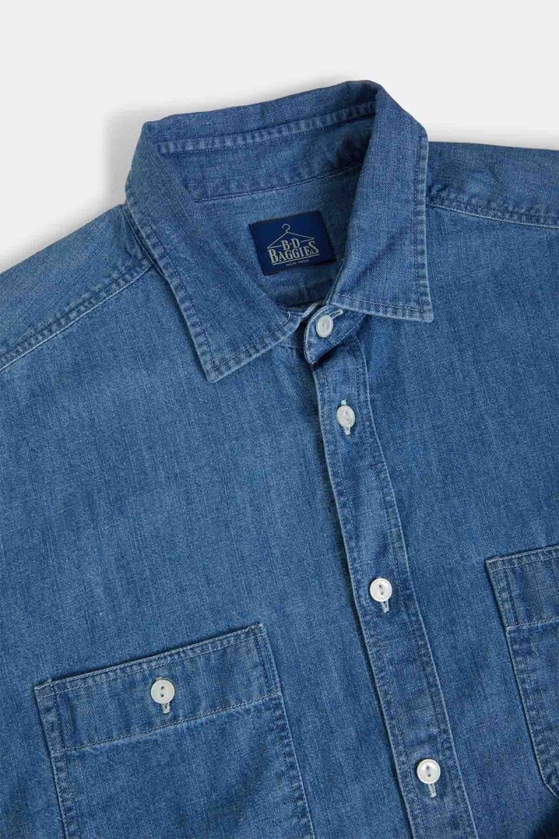Questa camicia a maniche lunghe in 100% cotone di B.D. Baggies è perfetta per completare i tuoi look estivi e primaverili. Realizzata con la tecnica del lavaggio stone wash, presenta dettagli curati come i due taschini frontali con chiusura a bottone e le cuciture a vista. Perfetta per uno stile casual e rilassato, E’ comoda da indossare come fosse una t-shirt e riprende il classico stile Workwear made in U.S.A. che caratterizza B.D. Baggies.