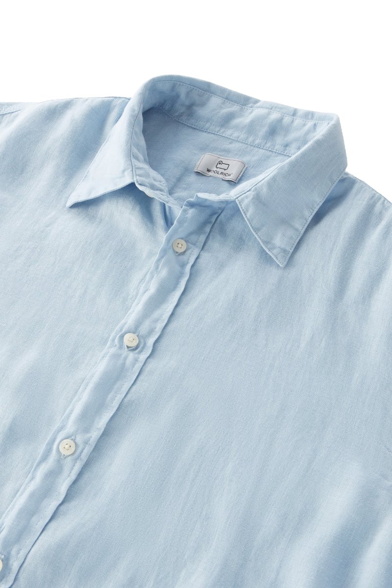 Camicia di Woolrich in puro lino tinta in capo celeste.